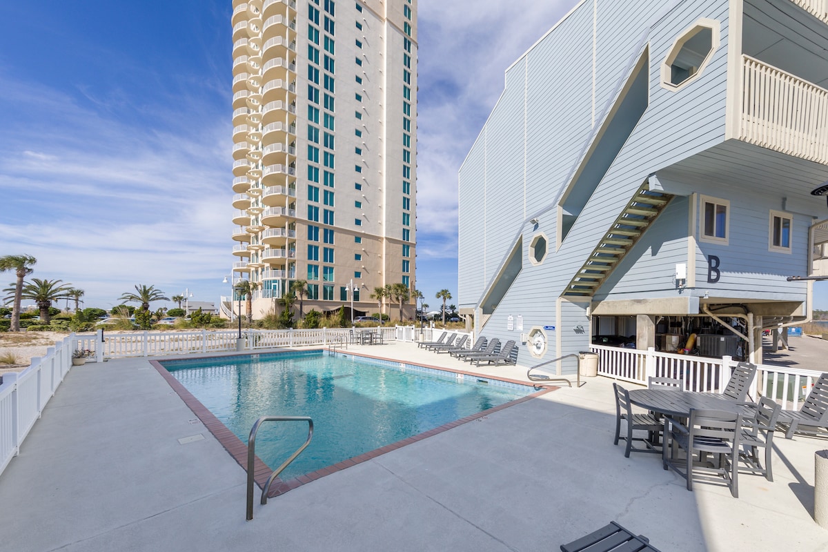 Diese Wohnung ist perfekt für einen Familienurlaub oder einen Kurzurlaub zu zweit. Es ist eine Wohnung mit 2 Schlafzimmern, 2 Badezimmern, im zweiten Stock in den Dolphin Villas, die eine großartige Lage hat, etwa 1,5 Meilen von den schönen Stränden mit dem öffentlichen Strandzugang entfernt. Viele Restaurants sind ganz in der Nähe (TackyJack's, OysterHouse, Lulu's...). Es gibt auch einen Lebensmittelladen und Walmart ganz in der Nähe. Du kannst in den nahegelegenen Wasserpark gehen, den Wharf oder Fort Morgan besuchen, in den Alabama Gulf Coast Zoo gehen oder den Tag am Strand entspannen.