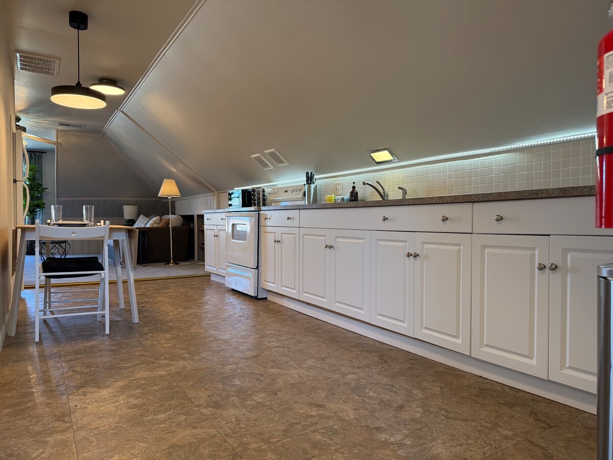 Relax and Enjoy beautiful Asbury Park in this 500 sqft open concept, modern studio apartment located in NW Asbury 1.5 miles from the beach. Enjoy a fully stocked kitchen, dishwasher & wine fridge. FAST Wi-Fi & 65” smart TV. Polished concrete floors, separate work area for working remotely, Queen sized bed and large size couch complete the space. This is a quiet (!) studio apartment in a multi-family home with a shared backyard. Early Check-ins and late check outs based on avail at $10/ hr