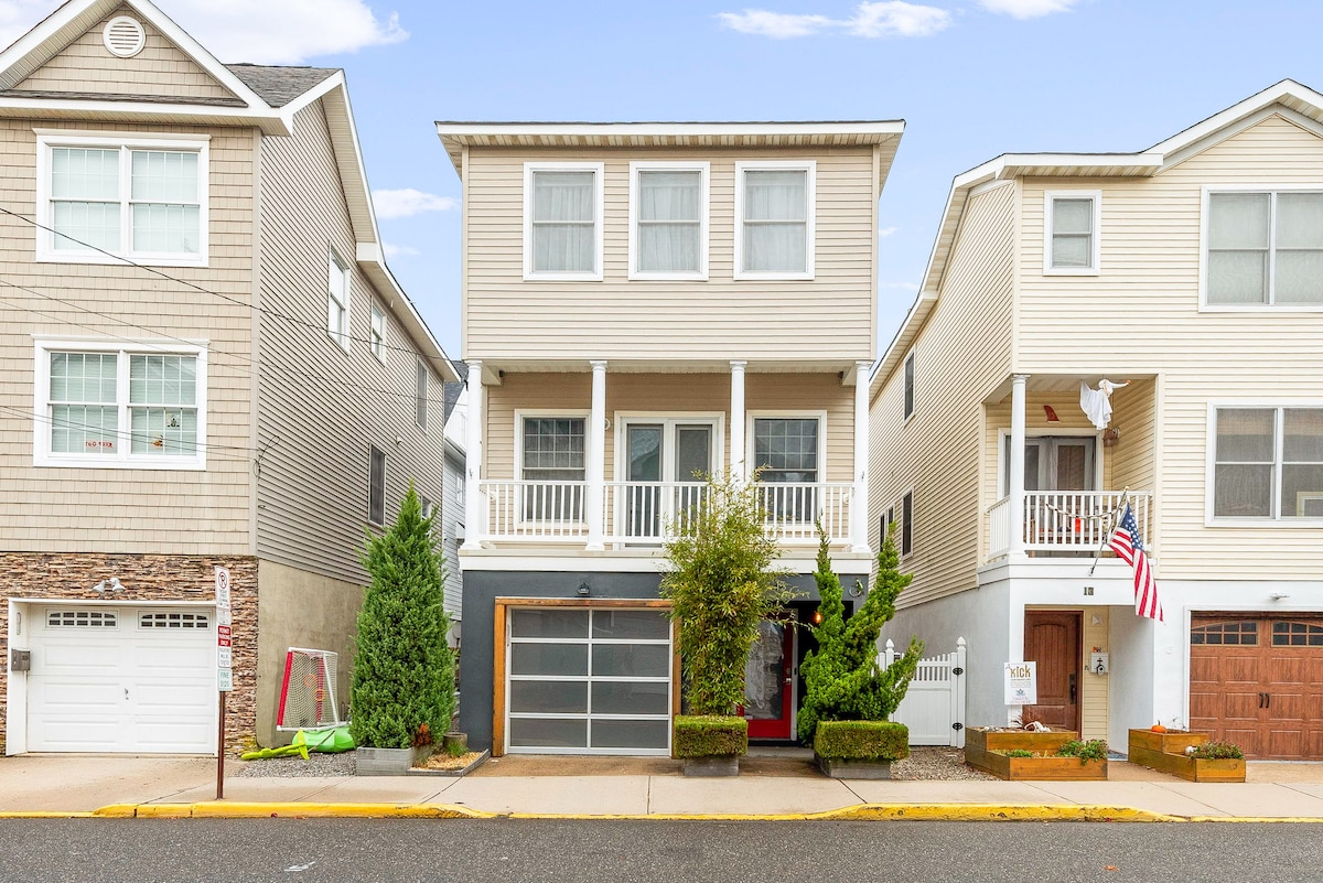 Voll ausgestattetes 6BR-Strandhaus mit 3 Badezimmern, eines auf jeder Etage. Parkplatz für 3 große Fahrzeuge. Genieße deinen Morgenkaffee/Nachmittagscocktail auf dem Balkon. Grille und genieße das Abendessen auf der Terrasse. Gehe oder fahre mit dem Fahrrad zum Strand (ca. 10 Blocks). In der Nähe der Innenstadt. In der Nähe des Deal Lake (Kanus und Paddleboarding). Moderne Küche mit Insel zum Vorbereiten und Servieren, Waschmaschine/Trockner, Geschirrspüler, zentrale Luft, Kabel-TV, WLAN, Arbeitsbereich. Sicher und ruhig. Perfekt für Familien/Freunde. Komplett renoviert, desinfiziert.