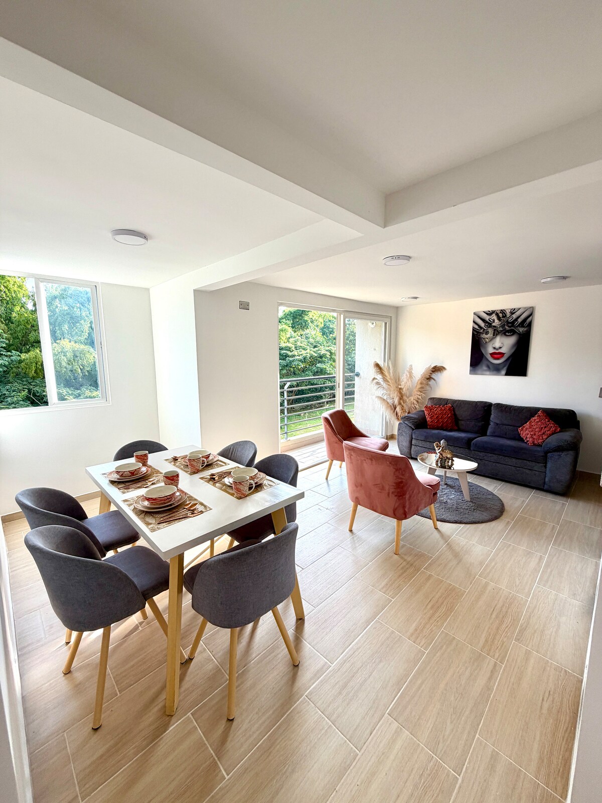 Apartamento central, cerca de la estación, parque deportivo, coliseo, Aqua, cr 5ta y avenida Guabinal. Silencioso, amplio, con parqueadero gratis para dos vehículos; a partir de ahí se cobra. Siéntete en casa, con camas cómodas premium, utensilios de cocina, shampoo y jabón corporal, todo pensado para recibir a nuestros invitados como familia. Plazoleta de comidas en el conjunto, tienda, bar y pizzería. Vigilancia 24 hrs. Acceso por ascensor directo desde el parqueadero.