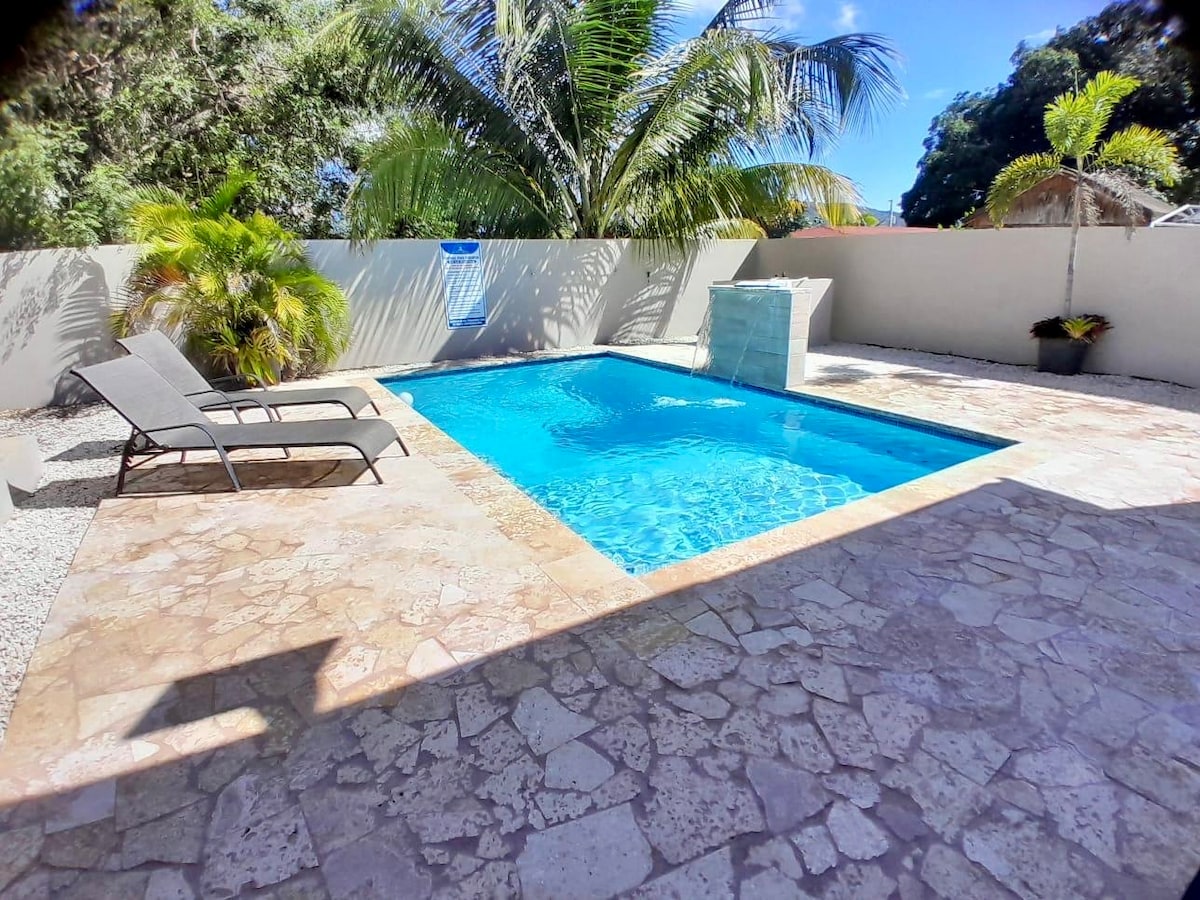 Entspanne dich mit der ganzen Familie in dieser ruhigen Unterkunft. 2 Minuten von El Poblado entfernt und nahe Strände wie Buyé und Boqueron. Genießen Sie das Haus mit einem neuen Pool abseits von Nachbarn und Lärm. 3 Schlafzimmer, 3 Badezimmer, eine tolle Küche. Genieße einen Billardtischbereich mit großartigem Soundsystem, um Musik zu hören und deine Lieblingssongs zu hören. Dieses schöne Haus war zuvor ein Wohnmobil und wurde jetzt in ein Haus mit einem Wohnzimmer im Freien und einem Esszimmer mit dem Pool view.787/946 &2010 umgebaut.