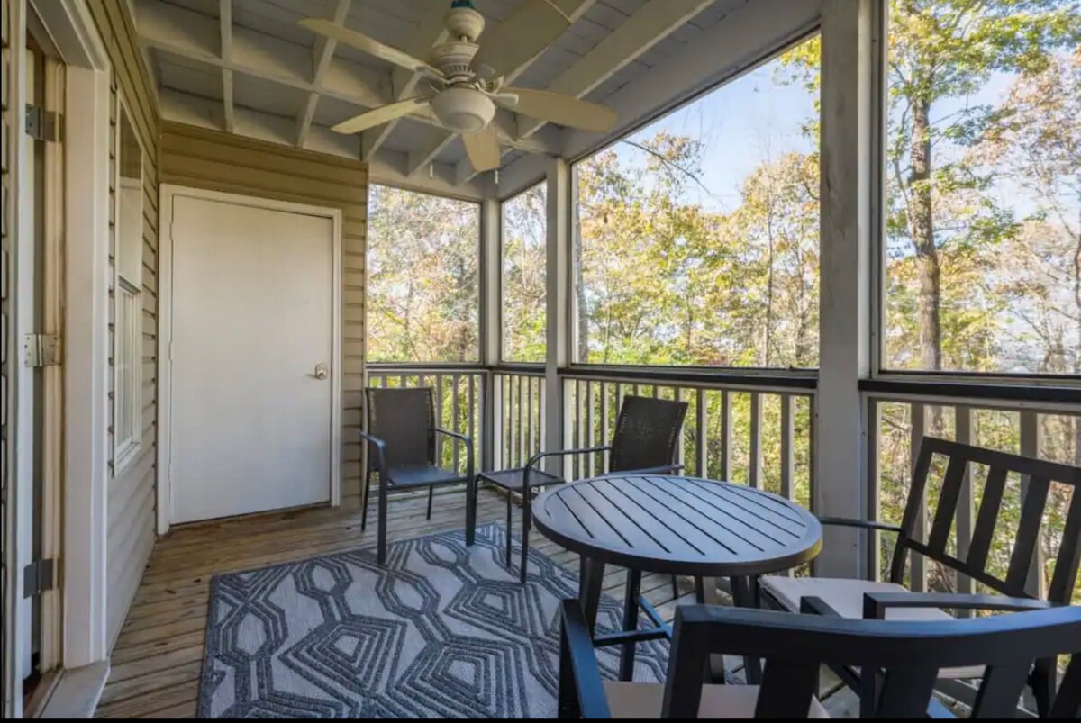 Cute bungelow with a great screened in porch offering the best sunsets in Birmingham! Clean and comfy with high quality bedding! Much better than your standard hotel room! Full kitchen (stocked with the essentials), washer and dryer, dining room (great for working on your laptop), full bathroom with shower/tub, and bedroom which also has patio access to overlook the valley! Sorry, we do not allow smoking, either inside the condo or outside on the patios.