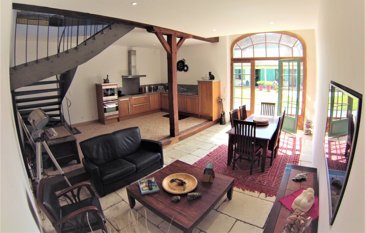 Diese alte Scheune aus dem 17. Jahrhundert, die vollständig im Stil renoviert wurde, befindet sich in einer ländlichen Umgebung, nur 12 Autominuten vom Stadtzentrum von Tours entfernt. Der Zugang ist unabhängig vom angrenzenden Haus der Eigentümer. OHNE KÜCHE, finden Sie den notwendigen Komfort und können einen privaten Parkplatz, einen entspannenden Gartenbereich ohne Gegenüber und im Inneren eine Glasfaser-WLAN-Verbindung nutzen. Geeignet für Tourismus, aber auch für Geschäftsreisen.