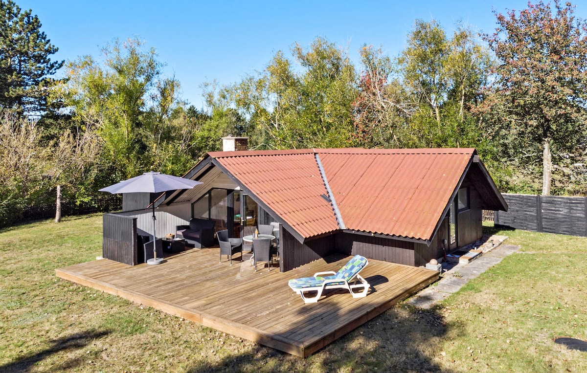 Idyllisches Sommerhaus (91 m2) mit kurzer Gehstrecke (200 m) zum fantastischen Strand der Gegend. Das Haus ist hell und freundlich und verfügt über 3 miteinander verbundene Wohnzimmer mit 2 Fernsehern, einem Holzofen und Couchtischen. Das Haus bietet 3 Schlafzimmer: 2 Zimmer mit 2 Einzelbetten in jedem - sowie den beliebten Schlafbereich der Kinder, wo das Etagenbett insgesamt 3 Etagen hat. Draußen kann man auf der Terrasse zu Mittag essen, und im Garten gibt es Platz für Spiele und Spiel.