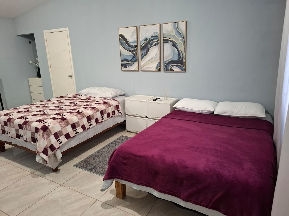 Erleben Sie einen herrlichen Loft-Rückzugsort, der sich perfekt für Geschäftsreisende und längere Aufenthalte eignet und moderne Annehmlichkeiten und eine ruhige Gartenatmosphäre bietet. - Küche mit Kühlschrank, Mikrowelle und Herd - Arbeitsplatz mit ergonomischem Stuhl und Arbeitslampe. – 150 MB WLAN von Starlink. - Doppelbett – Klimaanlage - 42-Zoll-Fernseher mit Netflix - Esstisch 2 Stühle - Badezimmer mit Handtüchern, Seife und Arzneischrank - Tolle Lage, 7 Minuten von International Bridges und dem Konsulat, 3 Minuten vom Highway.
