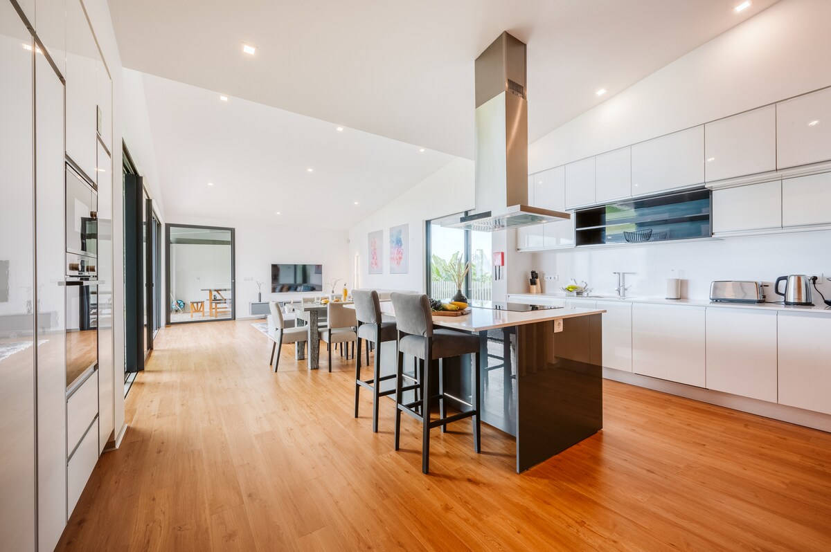 Wir präsentieren stolz eine moderne, geräumige einstöckige Villa, die für Kurzzeitvermietungen zur Verfügung steht. Sie wurde mit Blick auf Komfort und Stil entworfen und verfügt über eine offene Küche und einen Wohnbereich mit viel Tageslicht, drei gemütliche Schlafzimmer, zwei Badezimmer, eine Klimaanlage, einen privaten Pool und einen Parkplatz. In einer ruhigen Gegend gelegen, bietet es den perfekten Ausgangspunkt, um sich zu entspannen und die vielen atemberaubenden Sehenswürdigkeiten der Insel Madeira zu erkunden.