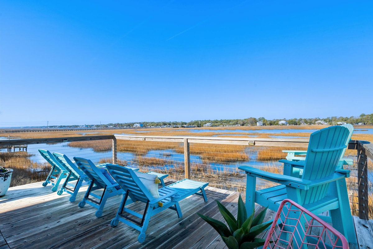 Genieße den schönen Meerblick direkt am Sumpf in der wunderschönen, einzigartigen A-Rahmen-Bauernhaus-Hütte in North Myrtle Beach, South Carolina. Genieße Kaffee und deine Lieblingsgetränke auf der hinteren Terrasse, während du den Sonnenaufgang über dem Atlantik beobachtest. Genieße die Ruhe und Gelassenheit der Natur, während du die Reiher vorbeifliegen siehst, lausche den Austern, wie sie beim Kommen und Gehen der Gezeiten zuklappen, und höre die Meereswellen. Häufige Sichtungen sind Weißkopfseeadler, Gimpel, Kolibris und mehr!