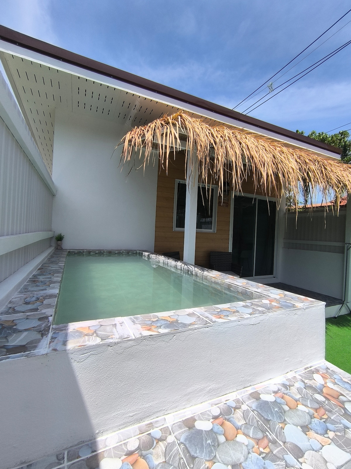 Unsere Villa ist neu eröffnet. Es ist eine geräumige private Villa mit minimalem modernen Stil mit Terrasse vor dem Zimmer. Es ist perfekt für Familien für Ihren wunderbaren Urlaub. Es verfügt über zwei Queensize-Betten und ein eigenes Bad mit Dusche. In der Villa gibt es auch eine Miniküche mit Mikrowelle, Wasserkocher, Kühlschrank, Spüle, Teller, Schüssel und Löffel mit Esstisch. Dieses Zimmer verfügt auch über eine Klimaanlage, einen Flachbild-Smart-TV, einen Safe, ein privates Highspeed-WLAN und Parkplätze vor Ort.