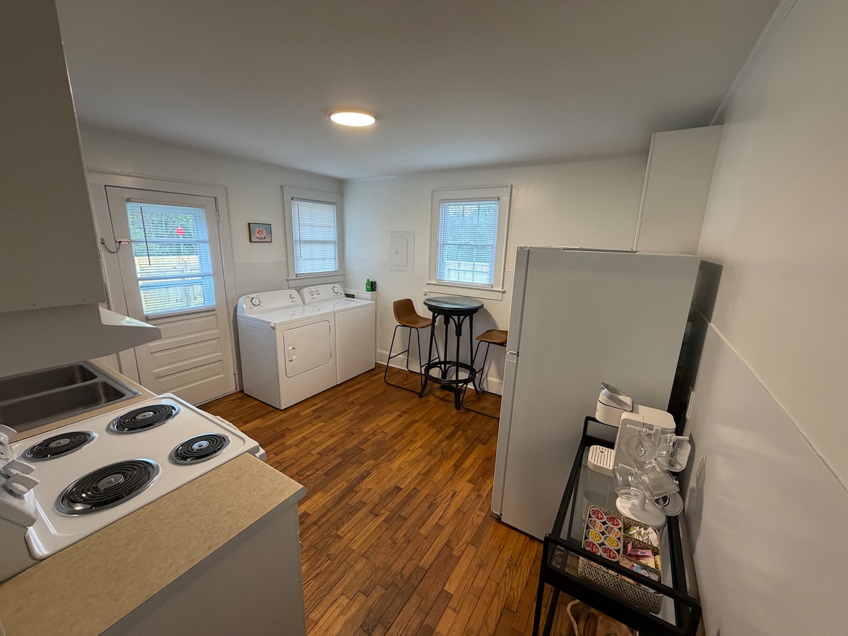 Komm allein oder mit der ganzen Familie und entspanne dich in diesem 3-Zimmer-Bungalow aus den 60er Jahren. Bestes Preis-Leistungs-Verhältnis in ILM. Sehr bequem zum Flughafen (<1 Meile), Wrightsville Beach (10 Meilen), UNCW (8 Meilen), Downtown/Riverfront (3,8 Meilen). Schön ausgestattetes Haus mit neu renovierten Badezimmern und moderner Küche. Das Haus ist sauber und mit allen normalen Annehmlichkeiten ausgestattet. VIEL PARKPLATZ und RIESIGER HINTERHOF, um die Haustiere auszuführen. Der Küchentisch bietet Platz für 8 Personen, also ideal zum Essen mit der Familie oder Freunden.