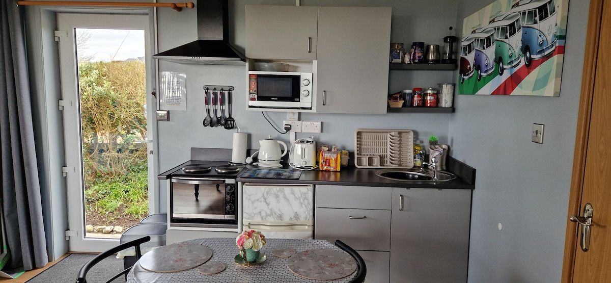 Vielleicht bist du ein Meeresschwimmer oder Surfer, der versucht, die Wellen zu fangen, oder ein romantisches Paar, das spektakuläre Sonnenaufgänge und Sonnenuntergänge sehen möchte, oder vielleicht ein Silver Surfer im Herbst deines Lebens, der nur nach Frieden sucht. Was auch immer dein Grund ist, die schöne Ruhe von Red Strand bringt dich dorthin, wo du sein möchtest. Geschmackvoll restauriert, ist dieses gemütliche Mobilheim, eingebettet zwischen Rathbarry & Ardfield in der Nähe von Clonakilty und nur einen Spaziergang vom Red Strand Beach entfernt, dein perfekter Rückzugsort.