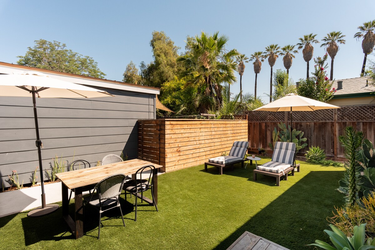 Unser kürzlich gestrichenes, ruhiges, sicheres, sehr sauberes und malerisches Gästehaus im mediterranen Stil befindet sich in einem gepflegten Garten unter einem Redwood-Baum und ist nur für 1 Gast geeignet. Du kannst bequem zu den Cafés, tollen Restaurants und Märkten im Viertel Midtown laufen. Schneller Zugang zum Stanford-Campus, zu Silicon Valley-Unternehmen, zu San Antonio-Einkaufsgebieten und zur California Ave Caltrain Station mit dem Auto. Du kannst gerne unseren Garten genießen, in der Hängematte schlafen oder auf der Terrasse mit WLAN-Zugang arbeiten.