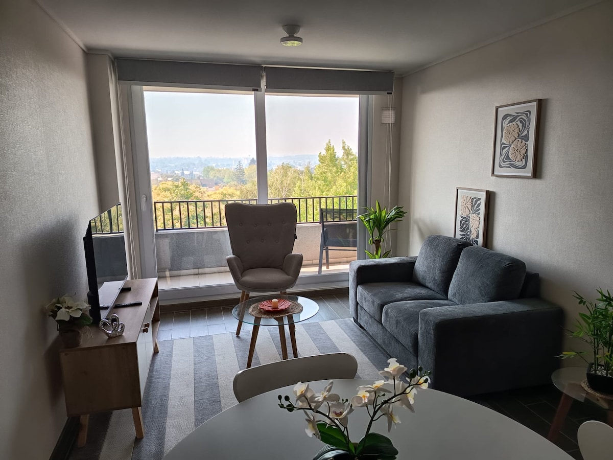 Disfruta de una estadía cómoda y relajante en este acogedor departamento ubicado en una de las zonas más agradables de la ciudad. Frente al edificio encontrarás una amplia avenida con árboles y áreas verdes, perfecta para caminar, hacer deporte. A pasos de áreas verdes, locomoción, comercios, hospital y servicios en general. Un lugar perfecto tanto para viajes de trabajo como para escapadas de descanso.