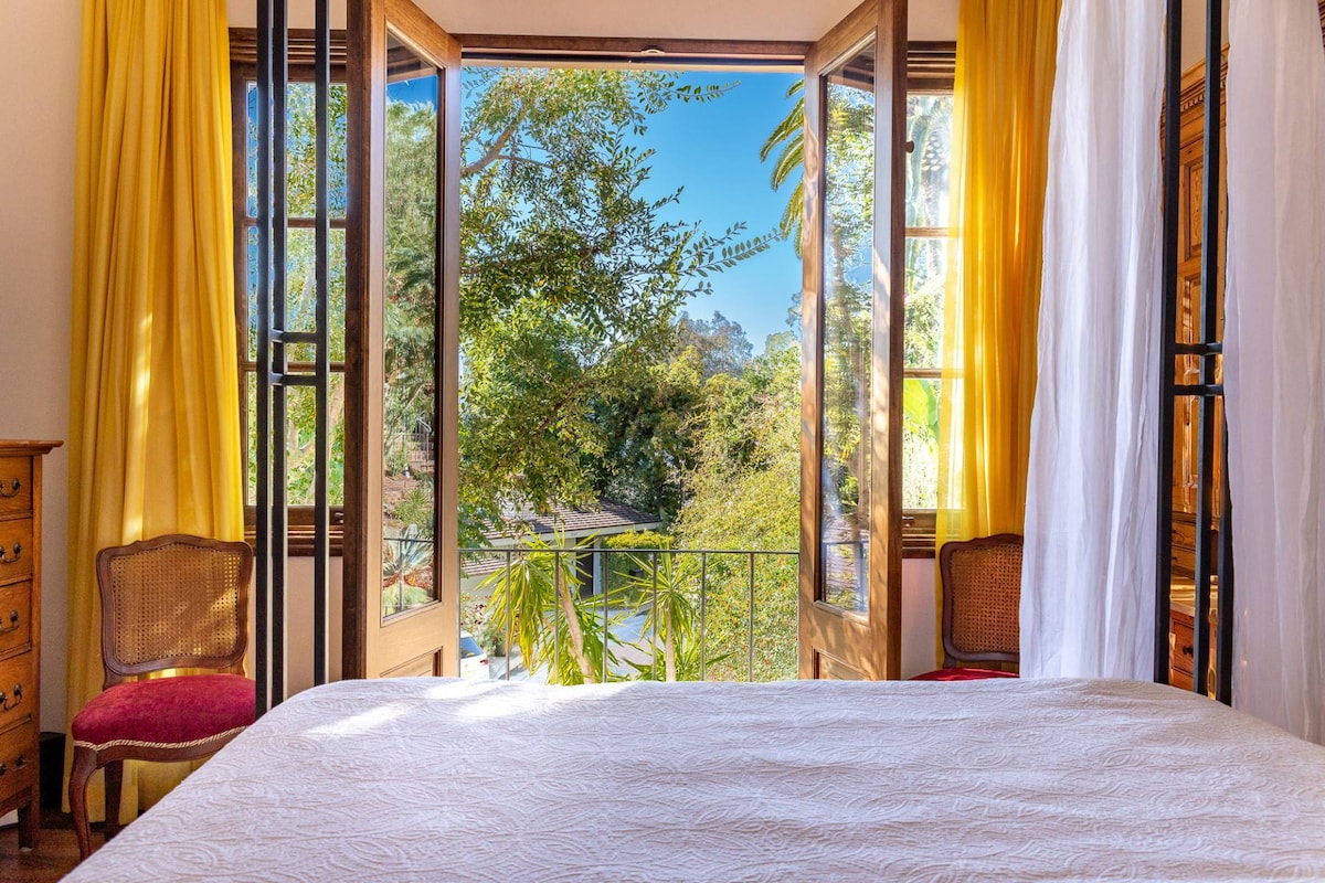 Professionell gereinigt und desinfiziert. Perfekt für den Geschäftsreisenden! Privates Haus in Hanglage, umgebaut als Design-Vitrine mit herrlichem Blick auf Berge, Palmen und Wolkenkratzer in der Innenstadt. Jedes Detail wurde sorgfältig für einen ruhigen Aufenthalt durchdacht. Sehr sicher, mit gesichertem Tor, um das Grundstück zu betreten. Günstige Lage im Herzen von LA, leicht zugänglich, aber abgeschieden in einer ruhigen Gegend in der Nähe des Wildnisparks. 1400 Quadratfuß + Außenterrasse mit Aussicht. (Bitte lies die Hausregeln vor der Buchung.)