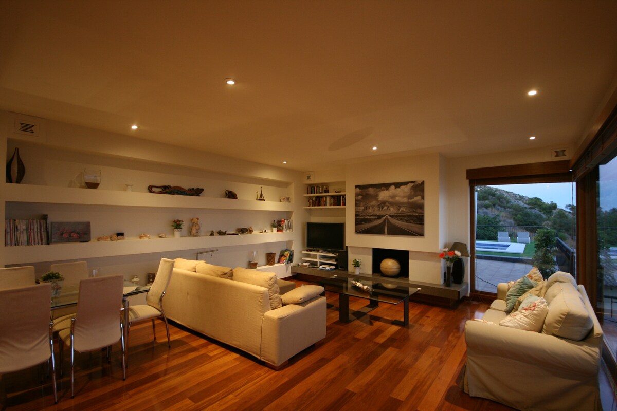 Schönes Haus mit Blick auf das Meer und die Berge