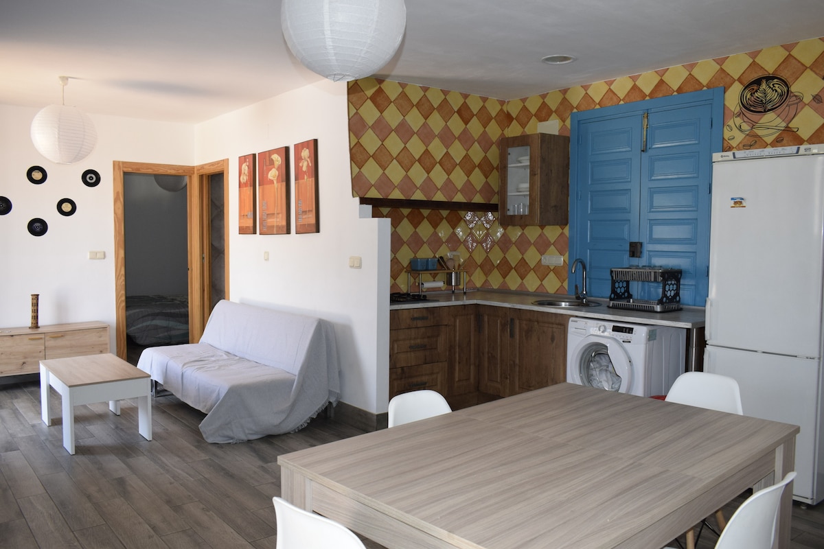Apartamento único. Abierto: salón cocina comedor, con dos habitaciones dobles y un cómodo baño. Dispone de una gran Terraza. Y Buen paisaje. para los huéspedes que deseen solo llegar y subir por la escalera de piedra natural Descansar en la Terraza con vistas a la montaña y sacar de la nevera una cerve ,y disfrutar del paisaje de la montaña sin dejar de estar a 10 min tienda, panadería, gimnasio, parque-mirador y el gran teatro Manuel Salmerón. Aquí puede vivir esa y más experiencias.