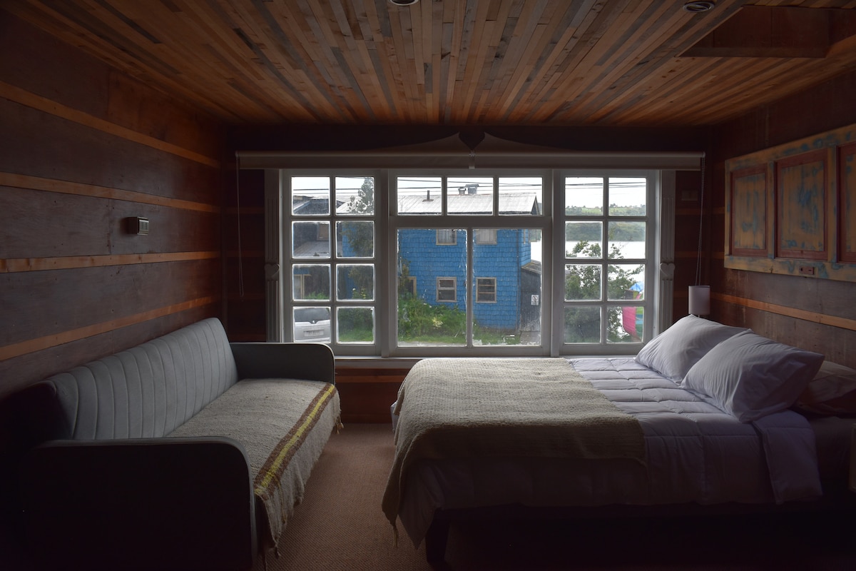 Dieses Home Studio bietet einen idealen Zufluchtsort für diejenigen, die sich von der Zivilisation abkoppeln möchten. In einer privilegierten natürlichen Umgebung gelegen, lädt die Unterkunft Paare ein, eine voll ausgestattete 1-Zimmer-Studio-Wohnung zu genießen, umgeben von der Ruhe und einzigartigen Schönheit von Chiloé. Hier bilden die Weite der Landschaft und die einheimische Flora und Fauna den perfekten Rahmen, um wieder zu sich selbst zu finden und die Natur in ihrer schönsten Form zu erleben.