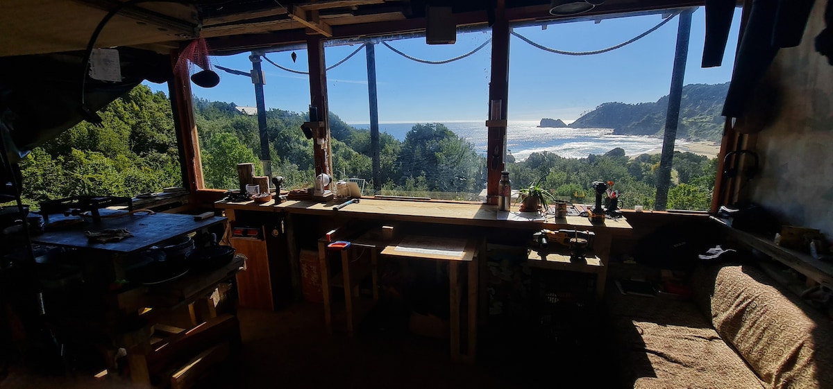 Ideal para el descanso profundo, la creación y la lectura Playa a 200 metros 100% energía solar 🌞 – Desayuno (c/café de grano) – WiFi 24 hs (espacio p/coworking) – Congelador – Parrilla c/ahumador – Biblioteca +60 obras Nos encontramos dentro de una comunidad familiar y tranquila, en plena costa. Sector sin tendido eléctrico ni servicios. 📍 Última parada camino a Caleta Huellelehue (7 km de trekking)