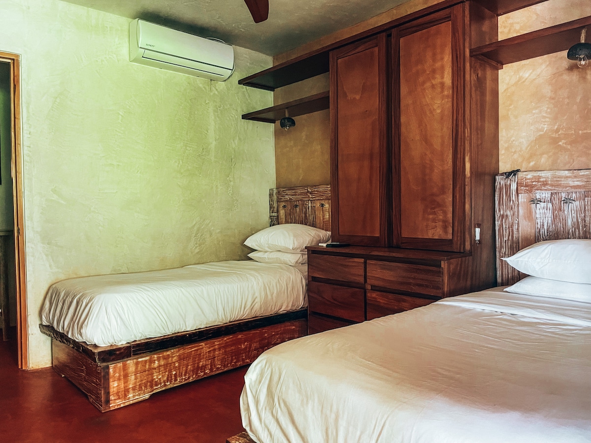 Luna Room ist das perfekte 2-Personen-Zimmer für wirtschaftliche Reisende, die mit kleinem Budget im Paradies übernachten möchten. Mit 2 Einzelbetten ist es perfekt für Freunde und Familie oder Alleinreisende. Dieses Zimmer befindet sich im zweiten Stock, einem ruhigen und friedlichen Raum. Ausgestattet mit Klimaanlage und heißem/kaltem Wasser kannst du nach einem unterhaltsamen Tag in der Panamasonne in dein Zimmer zurückkehren und in Entspannung versinken. *Eine Steuer in Höhe von 10 % wird separat erhoben, da Airbnb keine Steuern im Namen des Gastgebers erhebt.*