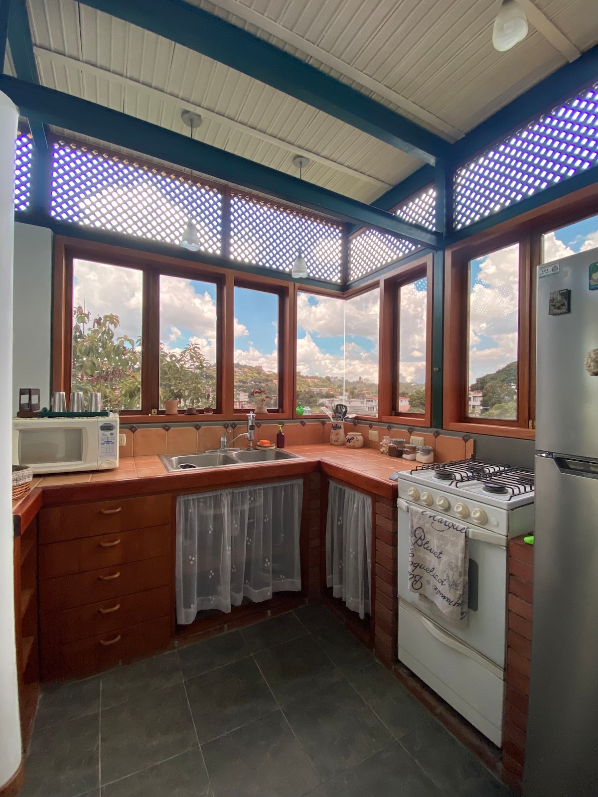 Wunderschönes, zweistöckiges Nebengebäude mit spektakulärem Design, das in die Natur integriert ist und uns vom Eingang aus einlädt, seine Räume zu genießen, uns in einer Hängematte zu entspannen, um die Aussicht auf Ávila zu genießen und uns wie zu Hause zu fühlen. Es ist ein gemütliches Haus mit Veranda, Wohnzimmer, Esszimmer, Einbauküche, Terrasse, Innengarten, 1 Doppelzimmer und 1 Einzelzimmer, 1,5 Badezimmer und Waschküche Das Hotel liegt in El Cafetal, einer Sackgasse und in der Nähe von Märkten, Apotheken, Restaurants, Parks und Einkaufszentren
