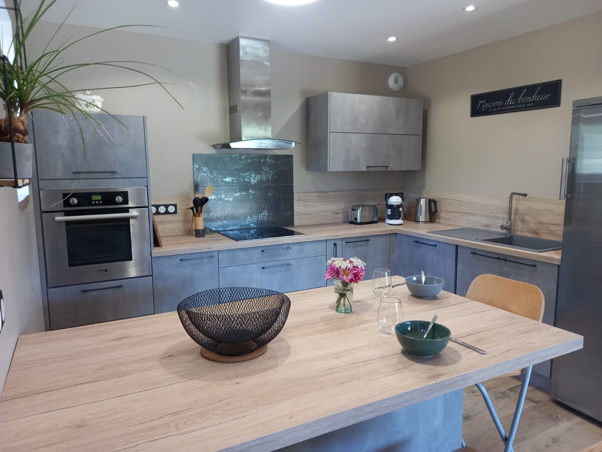 Charmantes kleines eigenständiges Haus, bestehend aus 1 großen Wohnzimmer mit Schlafsofa, 1 voll ausgestattete Küche mit Bar, Backofen, Geschirrspüler, Kühlschrank mit Gefrierfach, Mikrowelle, 1 Schlafzimmer im Zwischengeschoss offen zum Wohnzimmer mit 1 Bett in 160, 1 Bad mit Dusche und WC. Flachbildfernseher, DVD-Player, Hi-Fi-Kanal, Gesellschaftsspiele, Bücher, CD, DVD, Waschmaschine. WiFi bewaldetes Grundstück. Ruhige und idyllische Umgebung... Schöne Terrasse mit Grill, Gartenmöbel. Bett bei Ankunft gemacht.