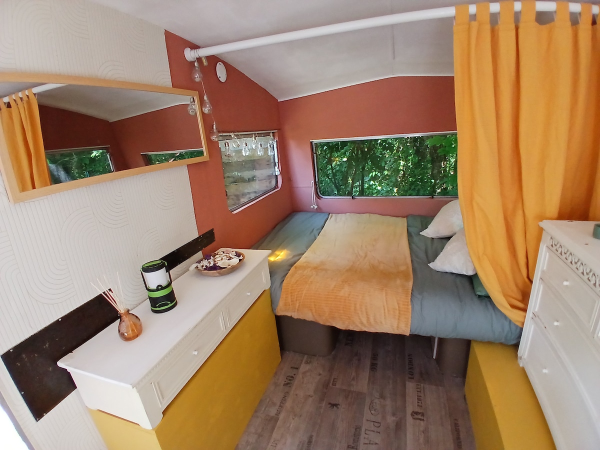 Es ist ein komfortabler moderner Wohnwagen in einer geschützten Ecke der Natur, und unter Berücksichtigung der Umwelt ist er mit Trockentoiletten ausgestattet. Sie können einen freien Blick genießen und sich in den Liegestühlen unter der Linde niederlassen und mit etwas Glück ein Reh oder ein Kaninchen überraschen oder von Ihren Tagesbesuchen in Sarlat, Lascaux in Montignac oder dem Schloss von Beynac träumen, das an den Film Les Visiteurs erinnert, und Überraschung...ein Heißluftballon am Horizont.
