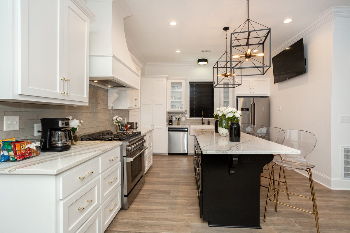 Dieser schwarz-goldene Designer-Palast ist ein Erlebnis wie kein anderes! Das Haus im New Orleans-Stil ist eine Nachbildung des Gartenviertels, die dich mit ihrem Stil und ihrer Eleganz begeistern wird. Es ist perfekt gelegen, 2,7 Meilen von der Innenstadt und LSU entfernt. Dieses Haus mit 3 Schlafzimmern und 2,5 Badezimmern ist 2.300 Quadratfuß groß und kann absolut große Gruppen und Familien aufnehmen. Es umfasst auch 6 riesige Smart-Roku-Fernseher, die sich in jedem Schlafzimmer, Wohnzimmer, zusätzlichen Wohnbereich und sogar in der Küche befinden!
