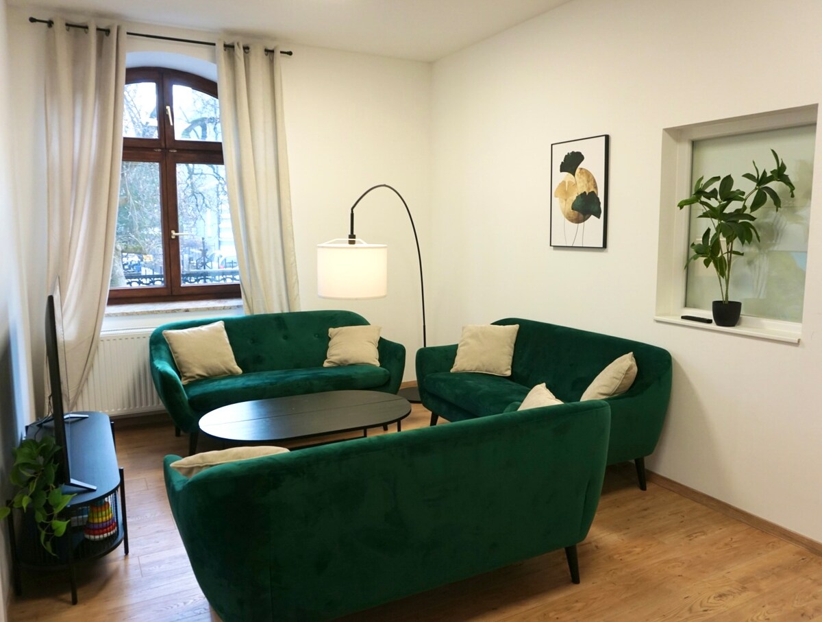 Die großzügige und stilvolle Wohnung erstreckt sich über eine ganze Villa Etage mit 130QM. Mit hohen Decken, großen Fenstern und hochwertigen Möbeln, sowie moderner Technik vereint sie historischen Charm mit modernem Stadtleben. Am Rande der Altstadt liegt sie zentral und zugleich ruhig und privat. Perfekt für Familien sowie größere Reisegruppen.