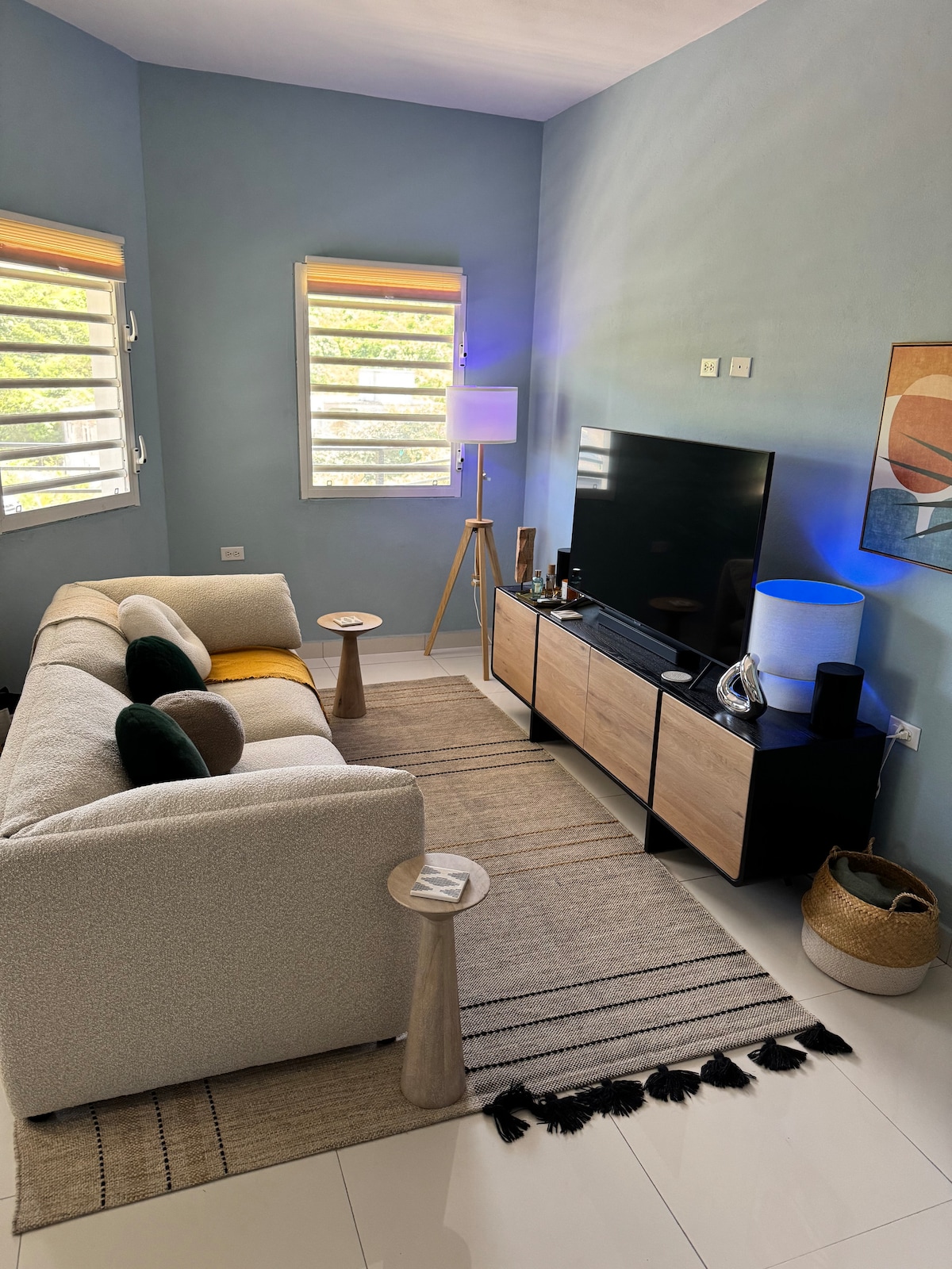 Ruhe und Gelassenheit: Das ist es, was Sie in unserem kleinen Paradies erwartet. Am Fuße unserer Villa haben wir diesen Ort geschaffen, um uns zu entspannen. Jetzt teilen wir diese Oase der Ruhe. Sie können die Aussicht genießen, sich auf der 30 m2 großen Terrasse sonnen oder sich in diesem gemütlichen Raum ausruhen, der Schlafzimmer-Büro und Bad-WC vereint. Wir wollten einen farbenfrohen und warmen Raum, damit Sie Saint Martin unter den besten Bedingungen genießen können