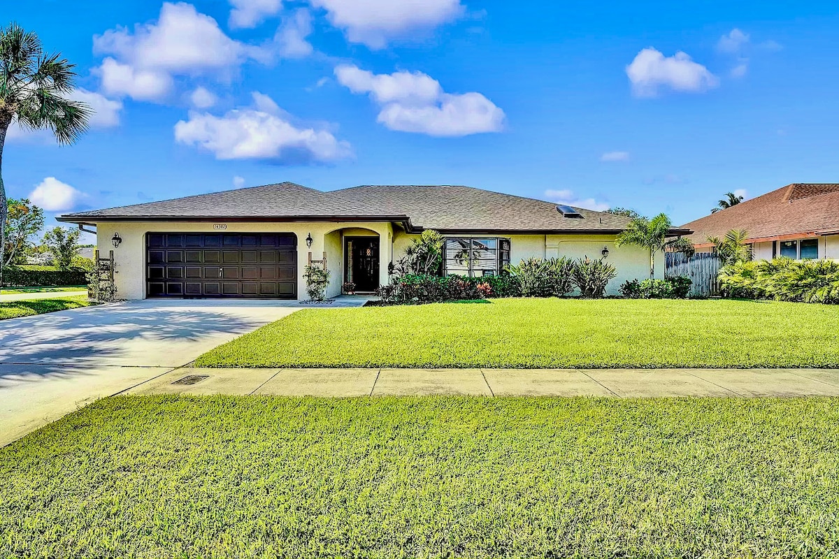 MODERNE 3-BETT-/2 BÄDER **PRIVILEGIERTE LAGE MIT DIREKTEM ZUGANG ZUM „COMMONS PARK“ 19 ACRESS PARK, SEE, KAJAKFAHREN & ANGELN DIREKT IN UNSEREM HINTERHOF** Near Equestrian Wellington. Bietet bequem Platz für bis zu acht Gäste. Haustierfreundlich (max. 2 Haustiere) Geräumige Hausanzeige. 20-30 Minuten vom Strand entfernt. 5-10 Minuten von Einkaufszentren, Restaurants, Tankstelle, Supermärkten entfernt. 20 Minuten vom internationalen Flughafen Palm Beach Super ruhige und sichere Nachbarschaft. KOMM UND GENIESSE ES!! *** KEINE PARTYS IN DIESER UNTERKUNFT ERLAUBT