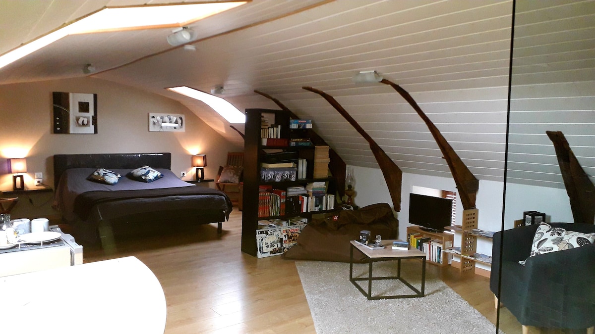 Renoviertes Studio von 32 m2 im Herzen des Dorfes mit separatem Eingang und Zugang zu einem Innenhof mit Essbereich. Ausgestattete Küche, Bad mit Dusche. Wohnzimmer mit Schlafbereich (Bett 140 cm). Nichtraucherwohnung Die Unterkunft ist nur wenige Gehminuten von den Geschäften entfernt: Bäckerei, Metzgerei, Minimarkt. Bettwäsche wird nicht für Aufenthalte von mehr als 15 Tagen zur Verfügung gestellt. Der Zugang zur Unterkunft erfordert das Hinuntergehen einiger Stufen.