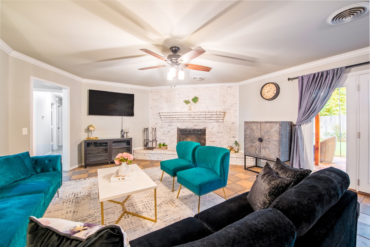 Dieser Kurzurlaub im Boho-Stil ist ideal für Familien und Gruppenaufenthalte! Mit einer voll ausgestatteten Küche, schnellem WLAN, zwei Wohnbereichen und einem 65-Zoll SmartTV (kostenloses Netflix, Hulu, Amazon). Kürzlich im ganzen Haus renoviert mit einer modernen und funktionalen Atmosphäre, in der Gäste sich entspannen und erholen können. Schöner Garten mit großen Bäumen, komplett eingezäuntem Rasenhof, überdachter Terrasse und Spielen im Freien, perfekt für unterhaltsame Gäste. Wir freuen uns darauf, Ihr Gastgeber zu sein!