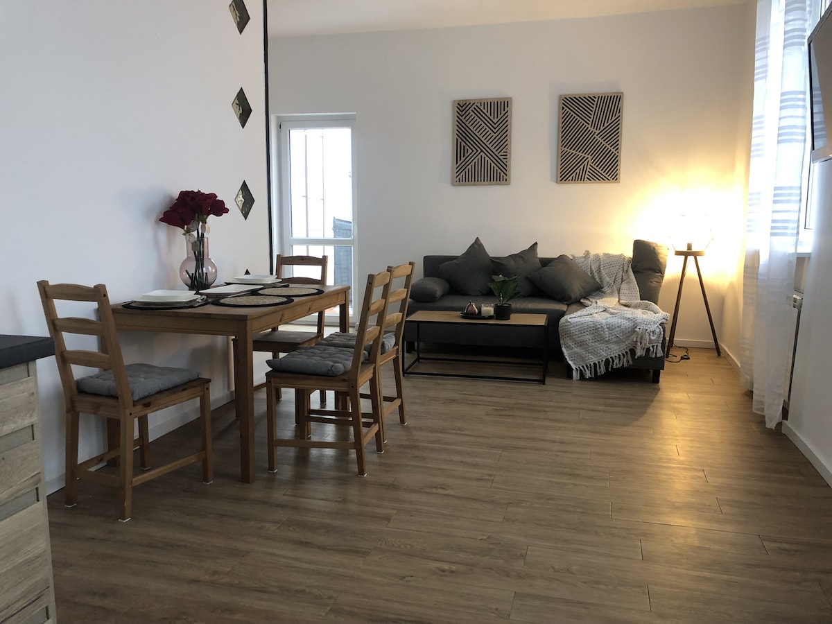 Goście mają do dyspozycji słoneczne mieszkanie na parterze w bloku mieszkalnym, z balkonem. W cichej okolicy z dużą ilością zieleni. ---- Den Gästen steht ein Sonniges Appartement im Erdgeschoss mit Balkon in einem Wohnblock zur Verfügung. In einer ruhigen, grünen Gegend. ---- Guests have at their disposal an sunny apartment on the ground floor in a block of flats, with a balcony. In a quiet, green area. Wir sprechen Deutsch ---- We speak Englisch