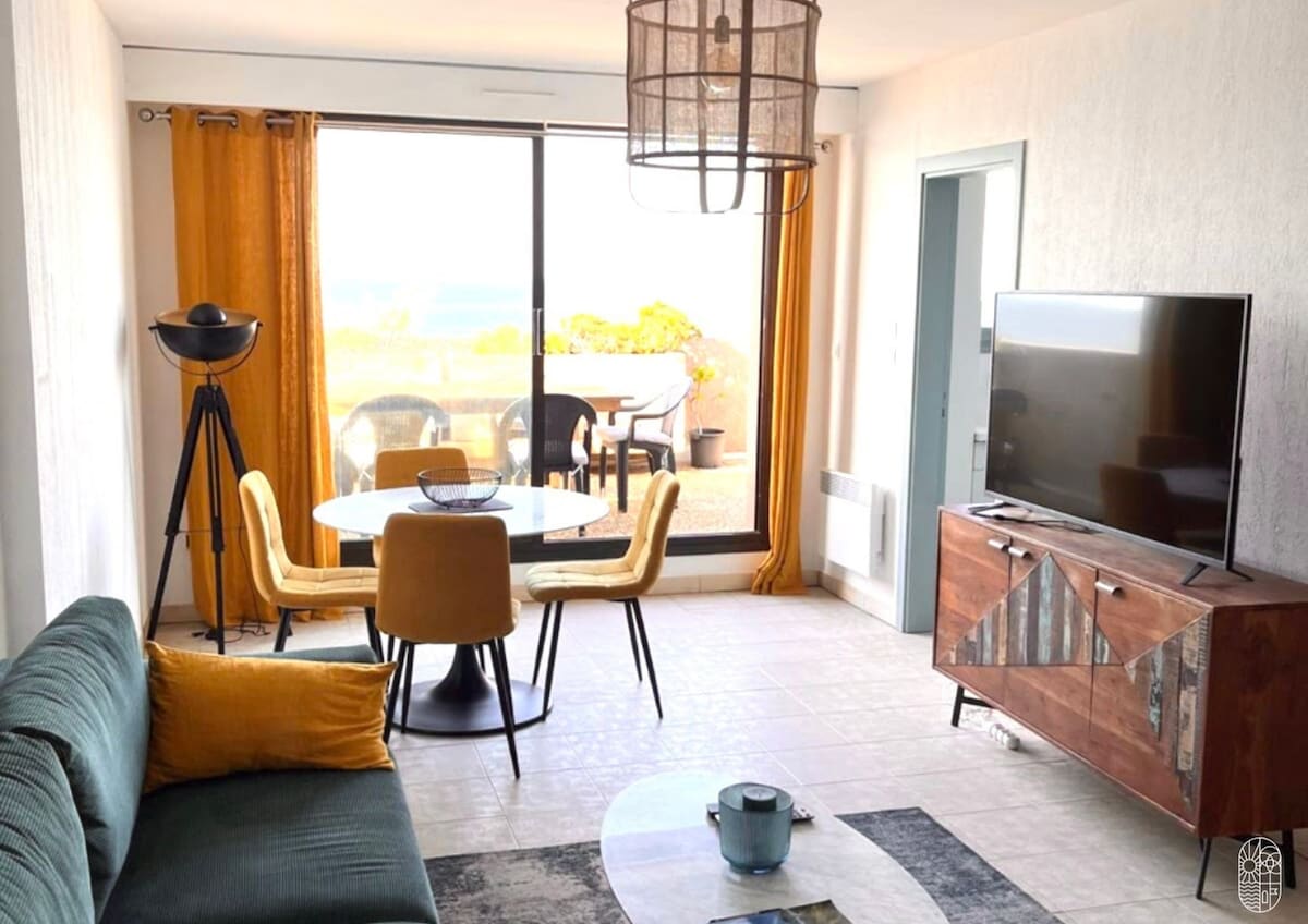 Das Meer zu Fuß zu Ihren Füßen! Kommen Sie und genießen Sie einen ruhigen Urlaub in dieser Wohnung, die weniger als 100 m zu Fuß von einer Bucht entfernt liegt. Genießen Sie auf der ersten und letzten Etage einer kleinen Residenz den Blick von der Terrasse auf das Meer und bewundern Sie die Sonnenuntergänge. Ausgestattet mit Klimaanlage, WLAN und neu ausgestattet, verfügt die Wohnung über ein großes Schlafzimmer mit Stauraum und im Zwischengeschoss ein Schlafzimmer mit zwei zugänglichen Betten. Seine Stärken: Eine herrliche Aussicht und die Nähe zu den Stränden.