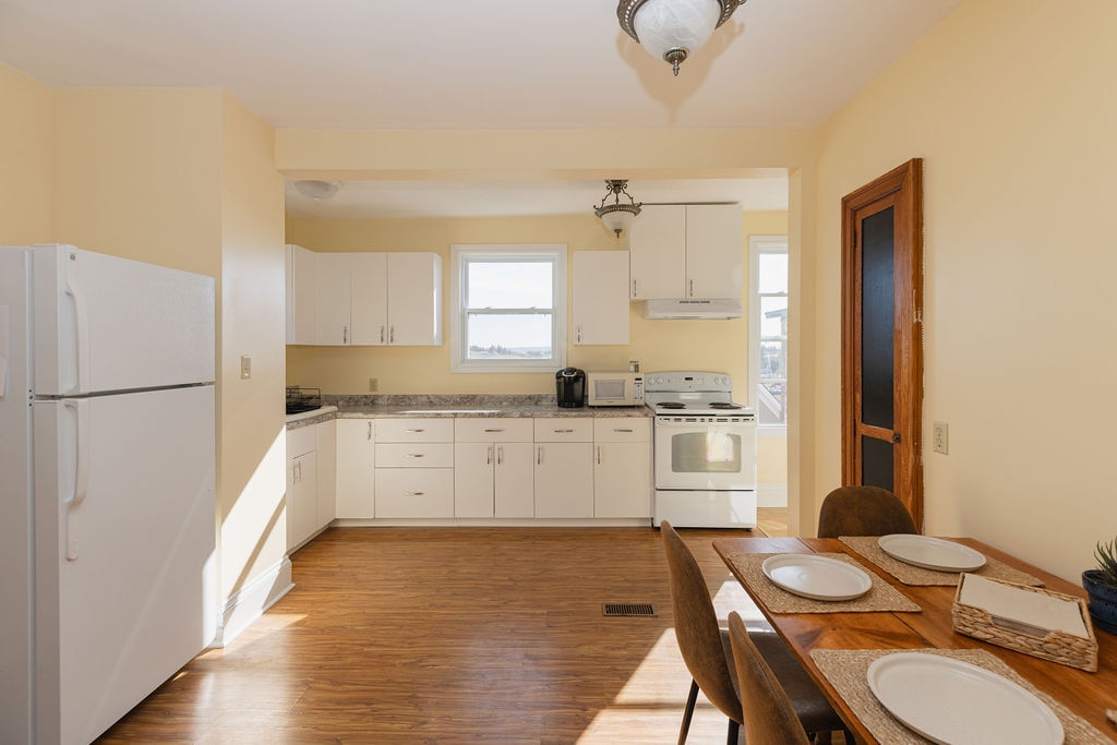 Welcome to your whimsical getaway in historic Old Town Lunenburg! Located above a restaurant, this bright cozy 2 bedroom unit features a king bed in the primary room and a double bed in the second. Inspired by garden charm, the decor creates peaceful playful vibes while large windows offer breathtaking views of Lunenburg Harbour. Outside your steps from shopping, top rated restaurants, and the picturesque waterfront. Ideal for short or long term stays in one of Nova Scotia’s most iconic towns.