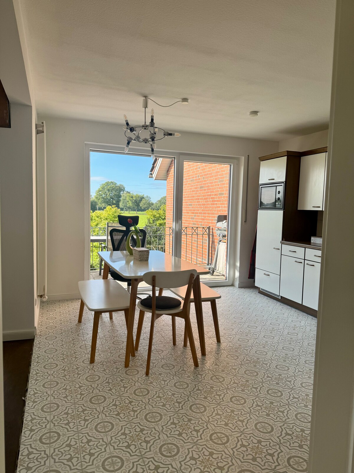 Fühl dich wie zu Hause in einem stilvoll eingerichteten Studio. Das Studio ist ein Anbau an einem Einfamilienhaus und verfügt über einen separaten Eingang sowie einer separaten Terrasse mit Blick in den großen Garten. Auf der Terrasse kann bei gutem Wetter gegrillt oder einfach entspannt die Abendsonne genossen werden. Im Studio befindet sich eine Küchennische mit mobilen Herdplatten, Mikrowelle und Nespresso VERTUO Next Kaffeemaschine. Eine gemütliche Sitzecke lädt zum Entspannen ein.