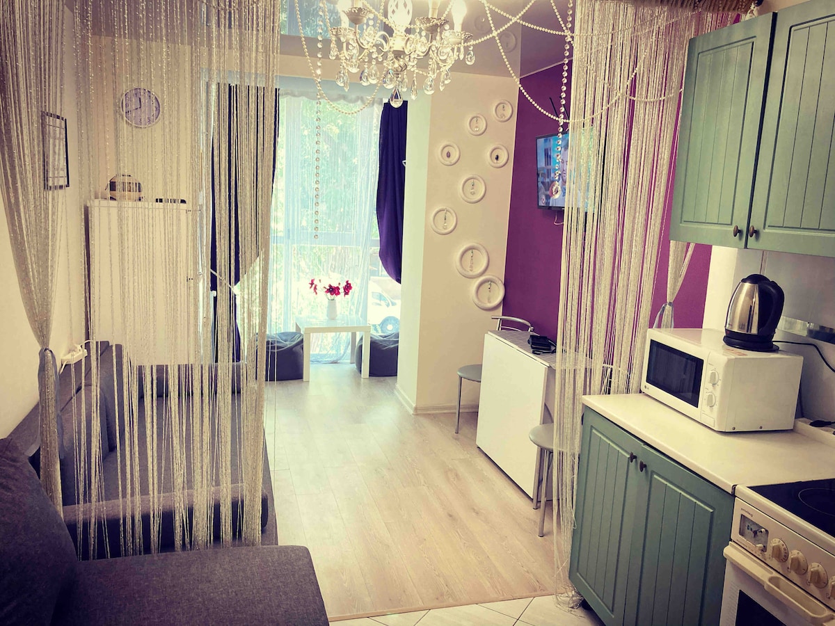 Studio 10 Gehminuten vom Strand und Restaurant/Strandkomplex „Yacht“ entfernt. In der Nähe befindet sich ein großes Einkaufszentrum "Riviera", Apotheke, Café "Katya Kak". Kostenloses Parken auf dem Grundstück.
