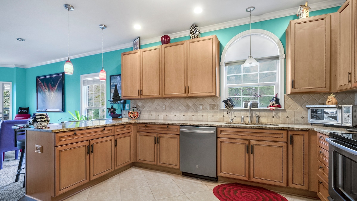 Meine Gästesuite befindet sich in der Nähe von Restaurants, Gewerbeparks, Einkaufsmöglichkeiten und einer guten Anbindung an Autobahnen. Gäste lieben diese Unterkunft wegen der großen Bäume, der Grünfläche und des eigenen Eingangs. Die Terrasse eignet sich hervorragend, um Morgenkaffee zu trinken, zu lesen oder einen Abenddrink zu genießen. Schöne, ruhige Nachbarschaft ist perfekt für einen Spaziergang/Lauf. Diese geräumige, komfortable Suite ist gut für Paare, Solo-Abenteurer, Geschäftsreisende und kleine Familien.