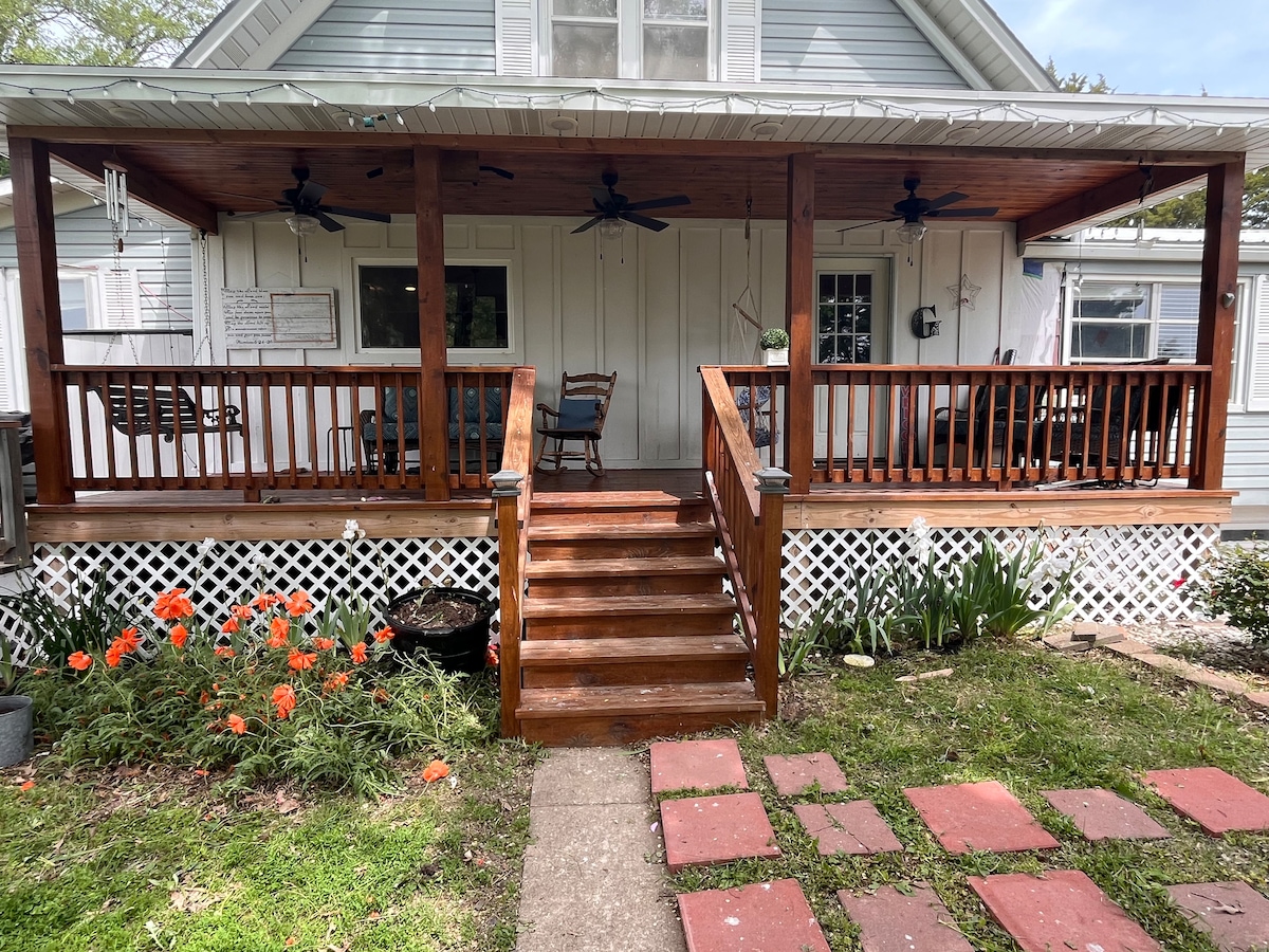 Welcome to your home away from home! This charming 2-bedroom house with a covered parking is just a short walk to downtown Emporia, ESU and across from the country club and other Disc golf courses, offering easy access to restaurants, shops, campus events, and the Unbound starting line. Enjoy a cozy living space, fully equipped kitchen, fast Wi-Fi, cute back yard with a fire pit, and a peaceful neighborhood. Perfect for families, visiting faculty, Cyclists and disc golfers or weekend getaways.