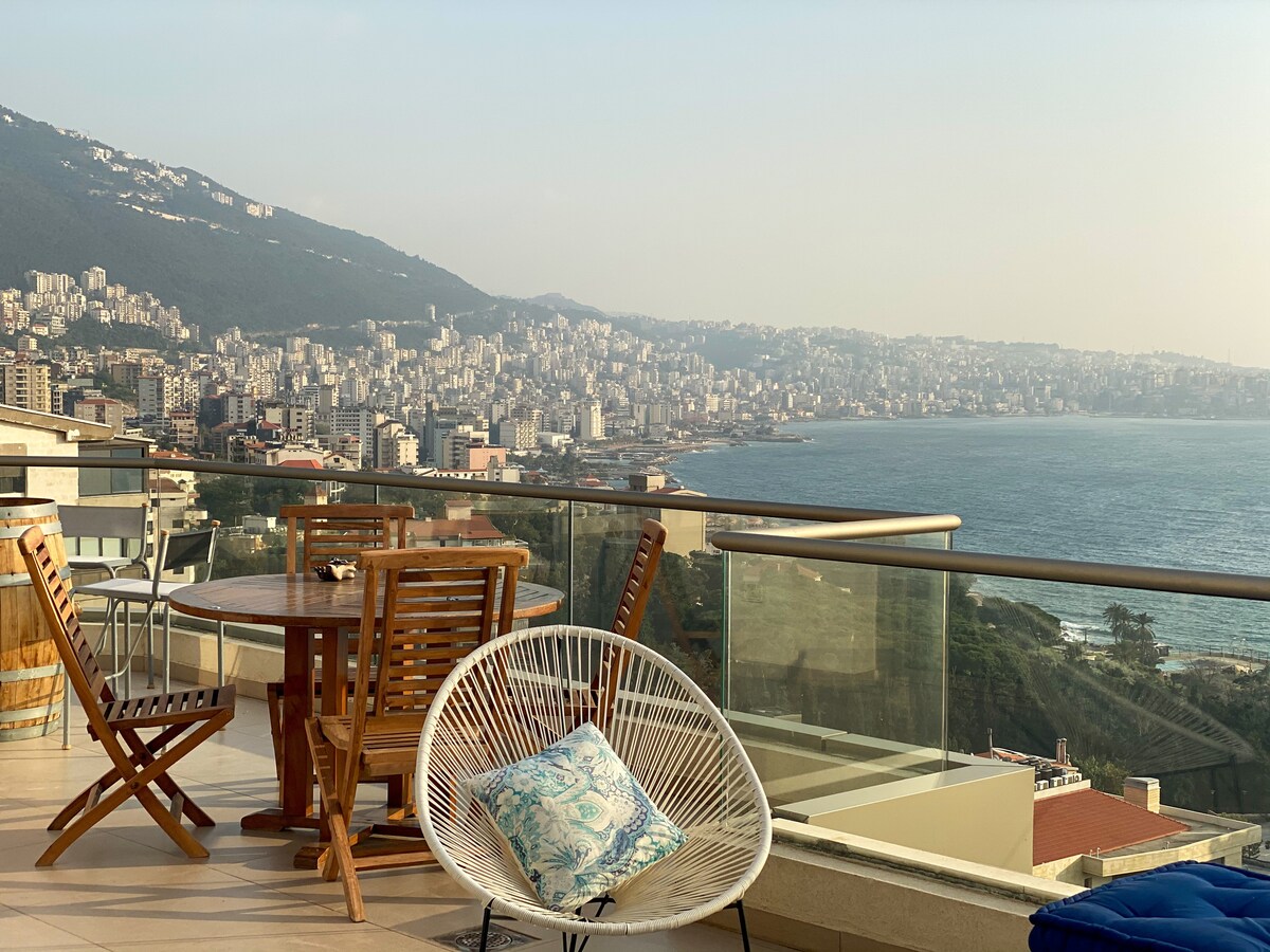 Dieses romantische Loft auf dem Dach bietet eine täglich rund um die Uhr verfügbare Stromversorgung. Es ist ein offener moderner Raum mit einer riesigen Terrasse mit atemberaubendem Blick auf das Meer und die Berge. Die Terrasse verfügt über einen großen runden Whirlpool, von dem aus Sie einen fantastischen Sonnenuntergang genießen können. Günstig zwischen Beirut und Byblos gelegen, hast du einen einfachen Zugang zu den wichtigsten Sehenswürdigkeiten, um den Ärger von Beirut zu vermeiden. Du wirst einen Poolbard, WLAN, Smart-TV, Klimaanlage genießen...eine Entdeckung, die du nicht vergessen wirst