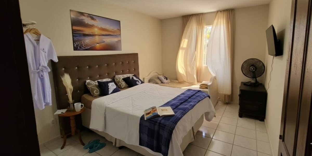 Die neu renovierte ✨ Wohnung, die bis ins kleinste Detail gestaltet wurde, um dich mit Komfort und Zweckmäßigkeit zu empfangen. Das Hotel liegt in der ruhigen Gegend Visconde de Araújo, mit einfachem Zugang zum Zentrum und zu den Stränden von Macaé. 🏡 Die gemütliche Atmosphäre, perfekt zum Ausruhen, Arbeiten oder um in Ruhe einen Kaffee zu trinken. 🍳 Ausgestattete Küche: Mikrowelle, Airfryer, Kaffeemaschine, Sandwich/Grill, Mixer. 💻 Raum mit hochwertigem WLAN und Smart-TV. Ein neuer, einladender und kompletter Raum, der für dich gemacht ist!