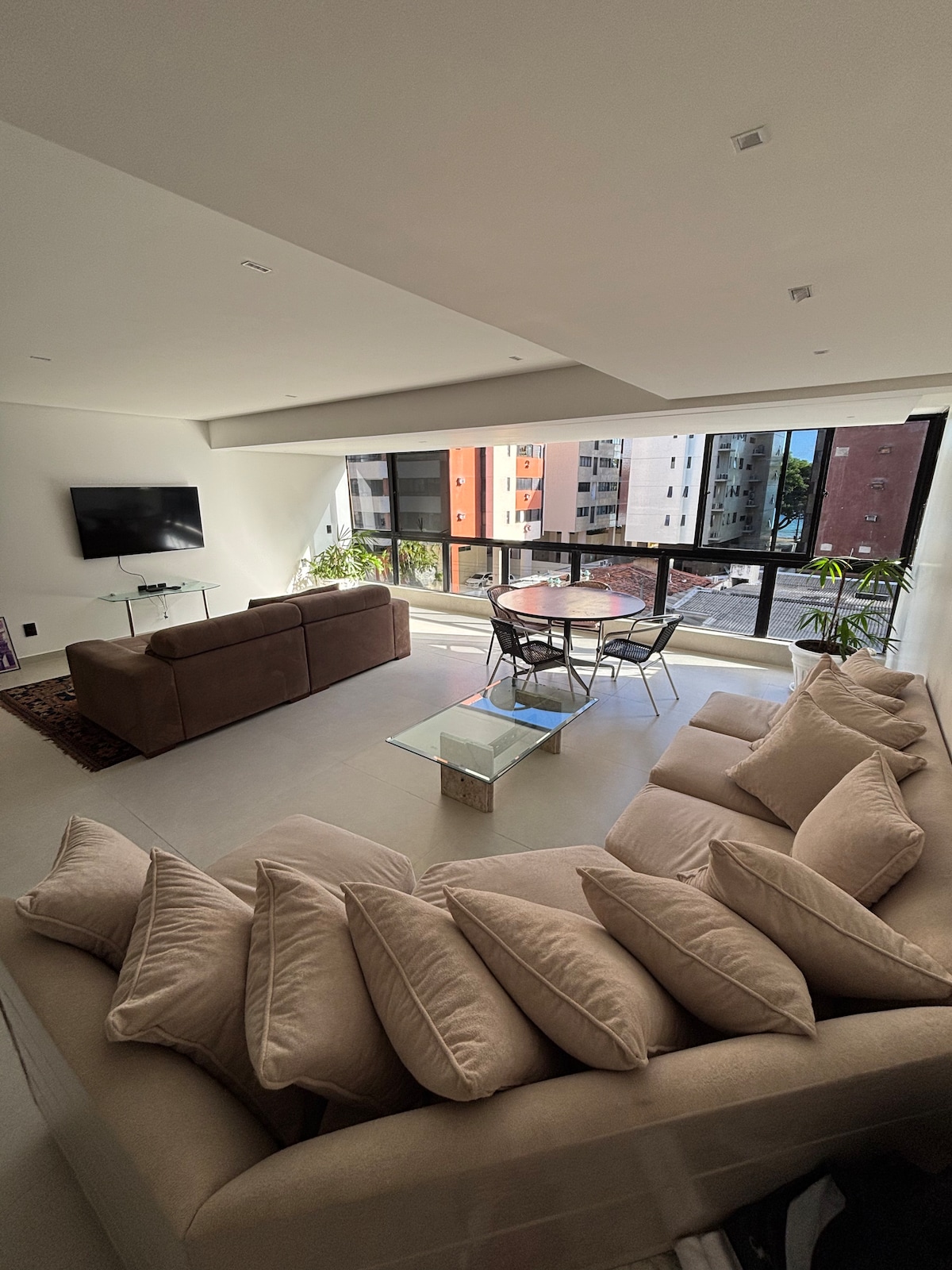 Beira-mar, no coração gastronômico e noturno da cidade! O prédio dispõe de sala de jogos, salão de festas, piscinas adulta/infantil, churrasqueiras, amplo pátio com mesas e cadeiras, chuveirão externo, e uma linda vista! O apartamento possui varanda com vista para o mar, 4 quartos, sendo uma suíte master, ar-condicionado em todos os quartos, 3 banheiros, chuveiro elétrico, cozinha equipada, Wi-Fi. Próximo: bares, restaurantes, mercados, shoppings e farmácias.