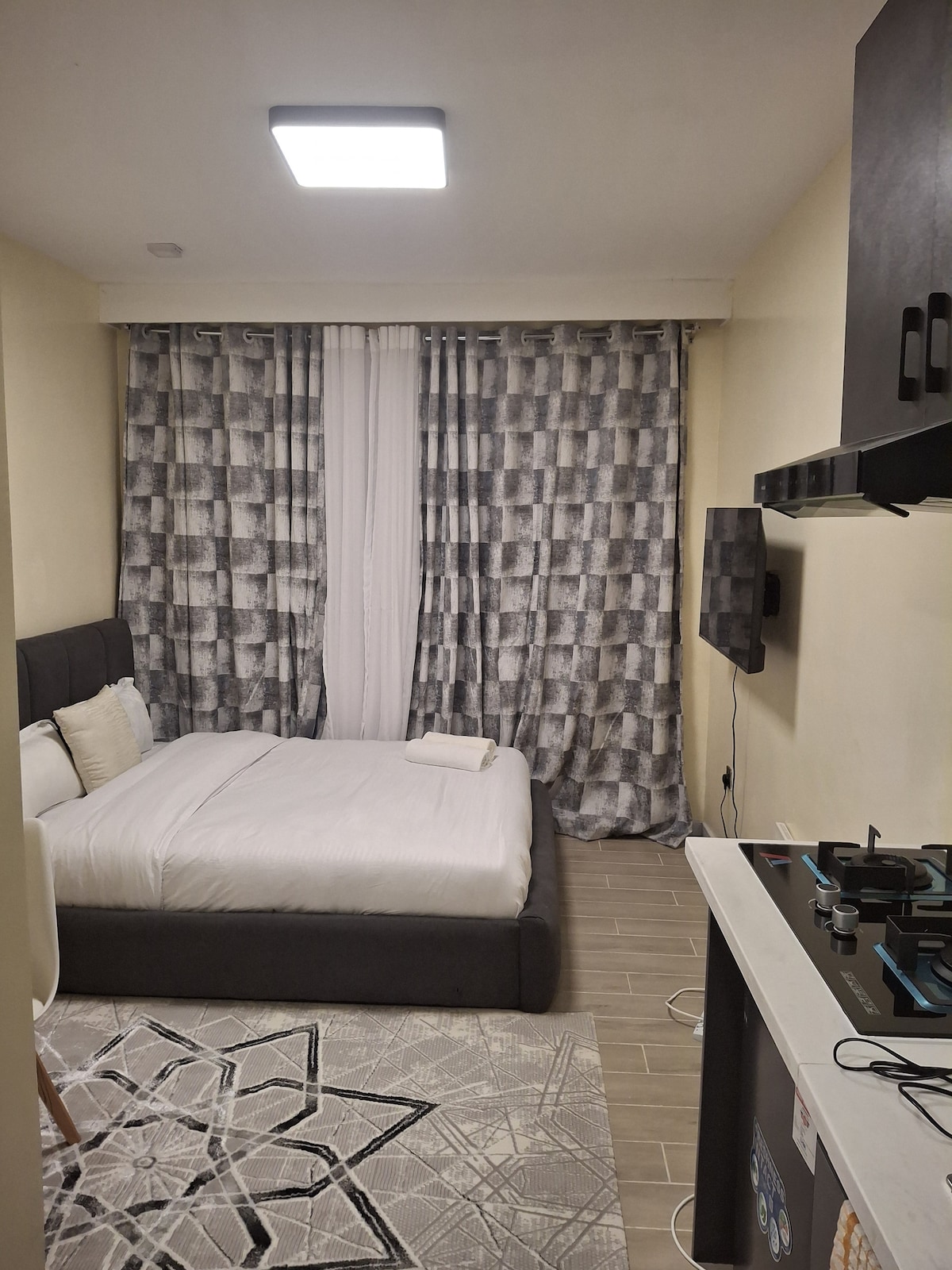 Karibu to your bright open-layout cozy studio apartment perfect for layovers or long stays. Just 8.7km from JKIA, 3.9km from SGR, 3.3km to the Expressway linking to Westlands 19km away (toll charges apply), and 1.8km to Gateway Mall. It's safe to check-in even late in the night with 24/7 security, elevator and keypad access. Features fast Wi-Fi, backup generator, queen bed, workspace, modern kitchen, free gym and pool access and complimentary housekeeping. Enjoy our Kenyan coffee and tea.