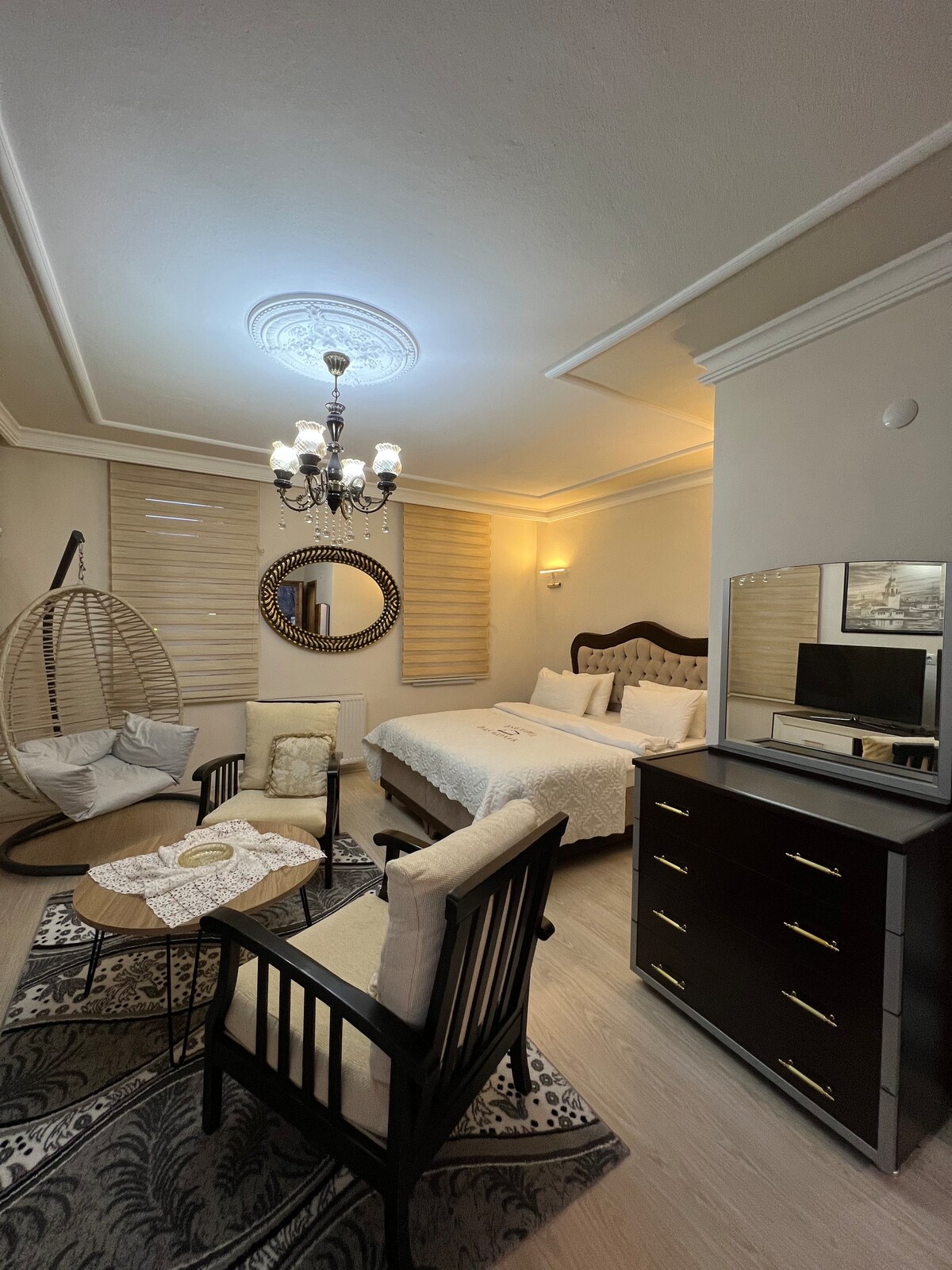 With 3 double-sized beds and 2 sofabeds, a wide family can stay here comfortably. The house is right on the drive way of Hamsiköy, where is famous with it’s own dessert “sütlaç” and popular among tourists. With a great amount of the windows, the apartment gets enough sunlight and you can enjoy the view of the green mountains & garden any time of the day. It’s a quiet, peaceful place where your family will feel like home.
