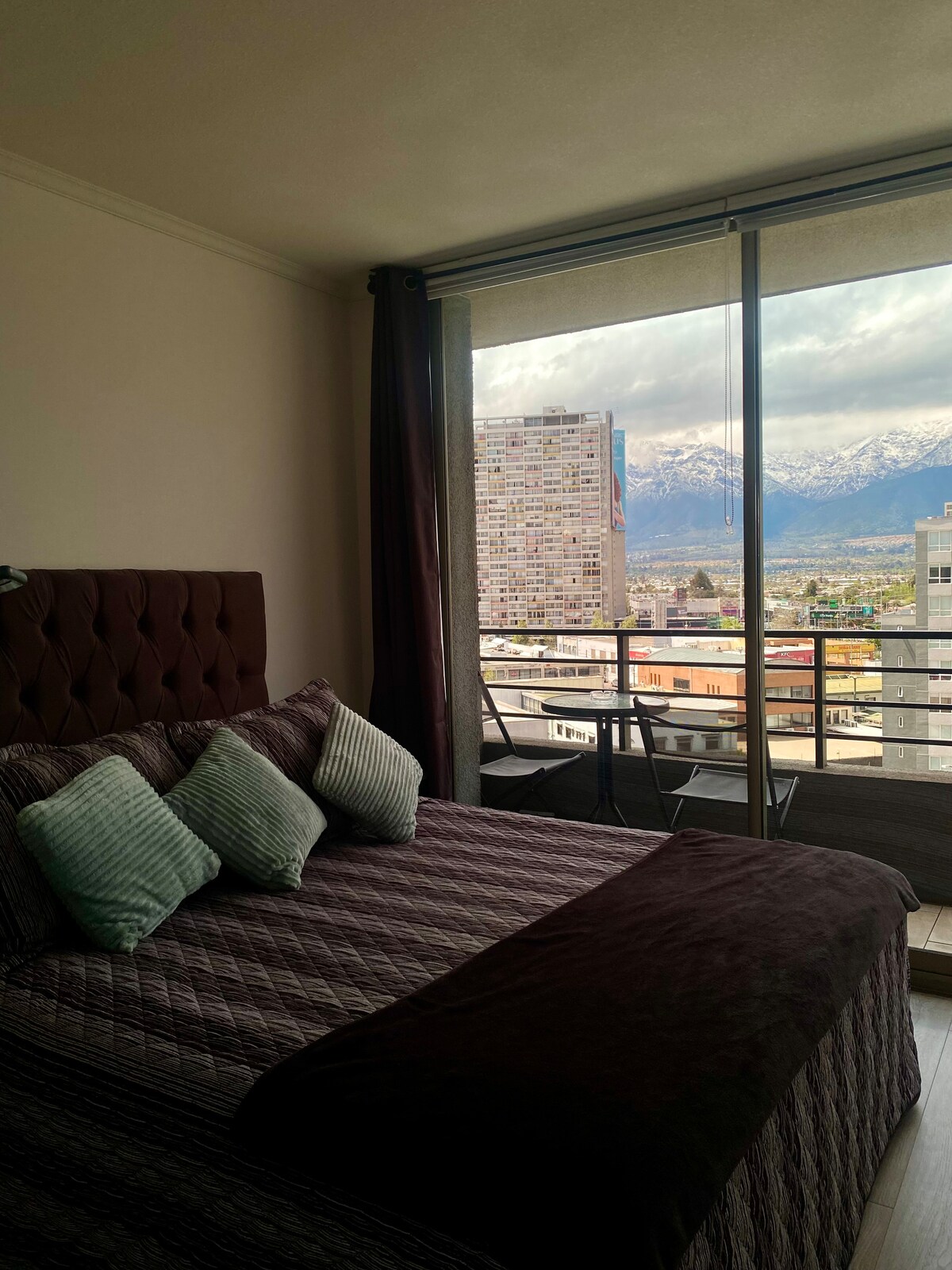 This apartment is ideal for relaxing and enjoying the city. It's centrally located, between the Santiago Centro and Providencia districts, one of the best locations in the city. It offers beautiful views of San Cristóbal Hill and the Sky Costanera. It's just a 3-minute walk from the metro and buses. Includes: Free Wi-Fi, a fully equipped kitchen, sheets and towels included, a large bed with a large Smart TV. Self-service entrance with a key, allowing you to arrive at any time.