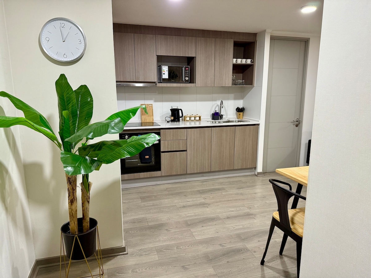 Welcome! • Enjoy easy access to much of Santiago via nearby main avenues. • Rest comfortably on a bed designed for your relaxation. • Parking is included, and you can ask us if you need an extra spot. • Just minutes from Estadio Nacional (Line 6) and Ñuble (Line 5) metro stations. • Close to shopping centers and supermarkets. • Fully equipped kitchen to cook whatever you’re in the mood for. • Security cameras in the building for your peace of mind. • Modern 34m² apartment.