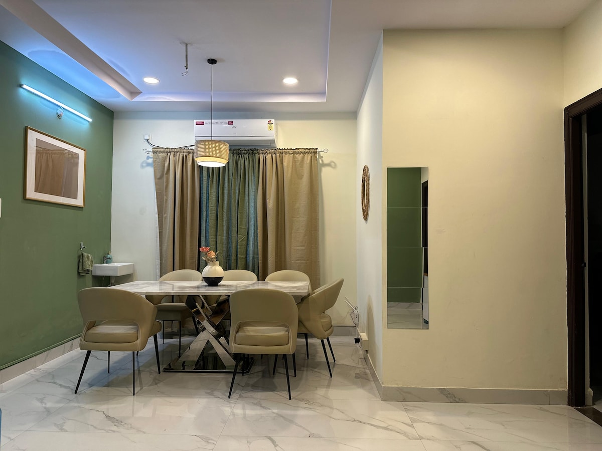 In der Smaragd-Oase Neu: Klimaanlage im Wohnzimmer wurde repariert Wir begrüßen dich, um unser neu restauriertes 3BHK mit modernisiertem Interieur zu erleben, das sich im Herzen von Hyderabad und in der Nähe von Hitex, Jubliee Hills und IT-Korridoren befindet. (Klimatisierte Schlafzimmer und Wohnzimmer) Die Wohnung ist ideal für Arbeit / Touring Hyderabad, Hochzeitsshopping oder ein erholsames Wochenende.
