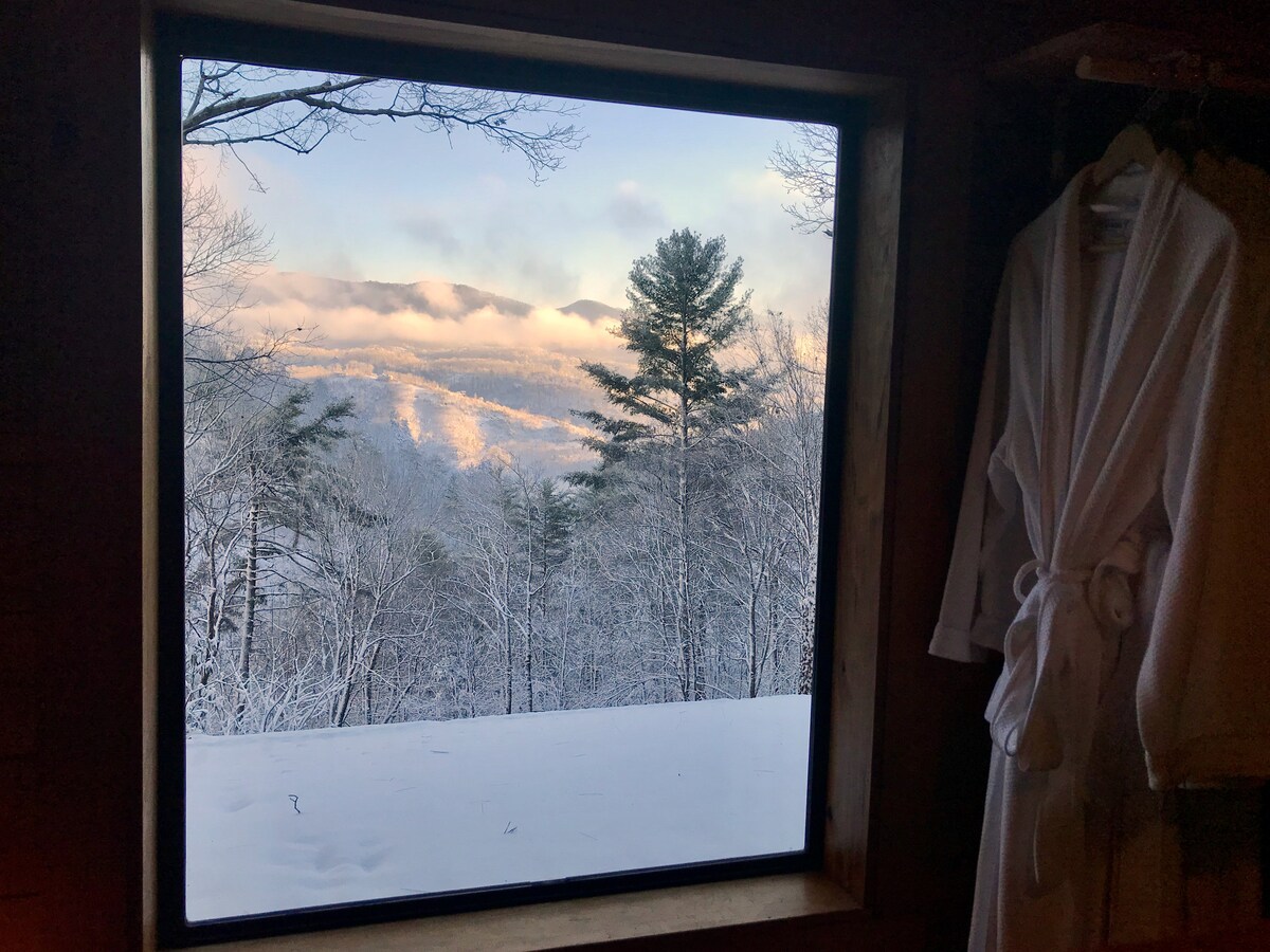 Willkommen im Laurel Valley Retreat! Genieße 64 Hektar, die diese skandinavisch inspirierte Hütte umgeben! Entspanne dich in deinem privaten Whirlpool, dusche im Freien unter den Sternen und genieße die frische Luft, während du den Berg hinauf wanderst oder friedlich in der Nähe des rauschenden Baches sitzt. Röste Marshmallows und verwöhne dich mit S'mores rund um die Feuerstelle. Der gemütliche Raum ist voller natürlichem Licht und Wärme mit bequemer Einrichtung innen und außen. Weniger als 5 Meilen vom Skigebiet Hatley Pointe (Wolf Ridge) entfernt.