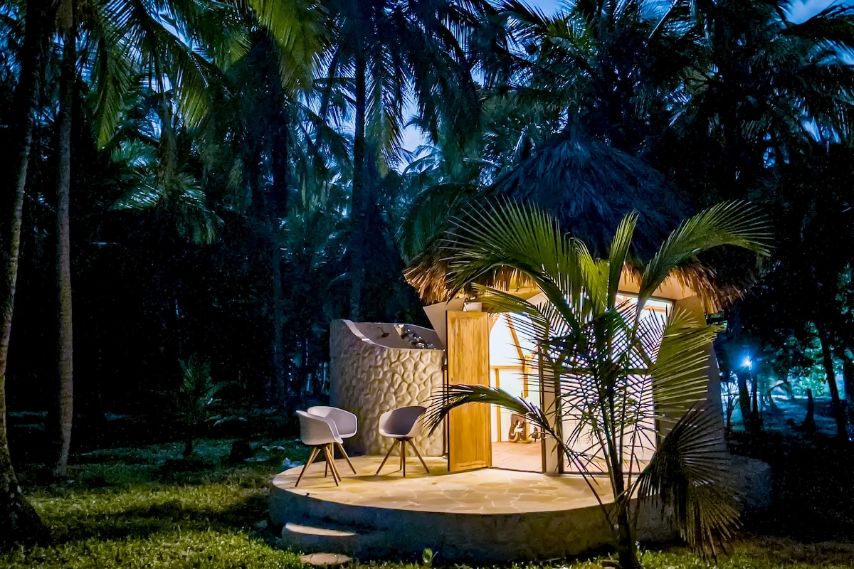 Wake up facing the ocean, surrounded by lush jungle and views of the snow-capped peaks of the Sierra Nevada. Jaguar Penthouse Cabin is the most exclusive top-floor stay, elevated above the beach for sweeping sea and mountain scenery. From the sky deck, enjoy golden sunrises and nearby wildlife. Spa, oceanfront restaurant-bar and direct beach access complete the experience. With AC, fresh water, WiFi and luxury linens—nature, comfort and adventure in one unforgettable escape. Amazing!