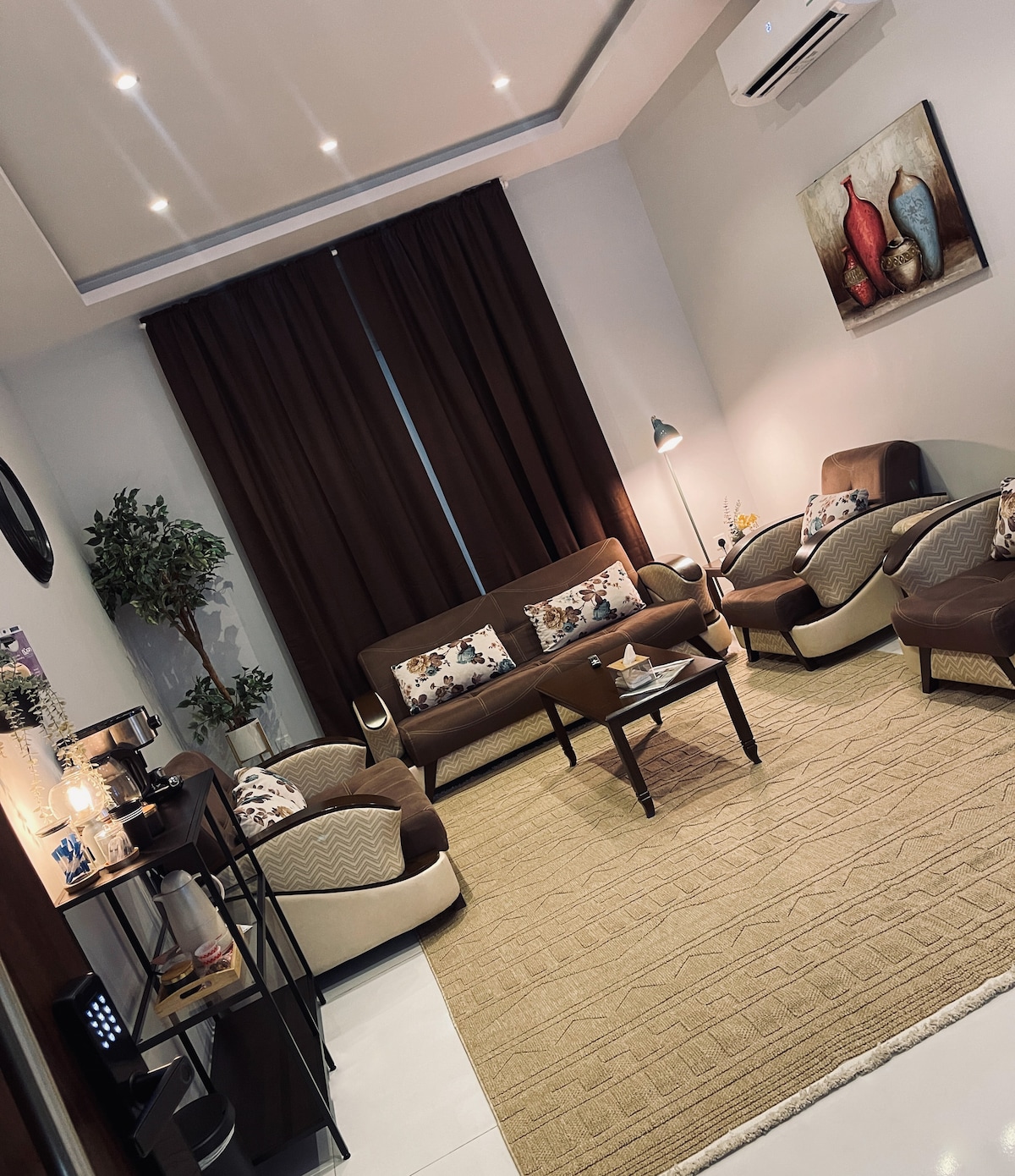 KHLDE APARTMENTS Luxuriöses ✨ Studio für tägliche, wöchentliche und monatliche Miete. Entdecken Sie die Pracht des Lebens in luxuriösen Apartments mit anspruchsvollem Design, das Luxus und Komfort vereint; geräumige Wohneinheiten mit atemberaubenden Ausblicken, die Ihnen einen außergewöhnlichen Lebensstil garantieren. 📍 Lage: Im prestigeträchtigsten und lebendigsten Viertel, Al Manar 4, hinter dem Al Yasmeen Mall in der Nähe von Luxusrestaurants, Einkaufszentren, internationalen Schulen und dem Flughafen. 🏢 Technische Daten: 🔸Eine stilvolle Lounge mit einer friedlichen Atmosphäre 🔸Geräumige Schlafzimmer mit Schränken 🔸Toilette am oberen Ende der Treppe 🎖️Weil du die beste Unterkunft für dich und deine Liebsten verdienst