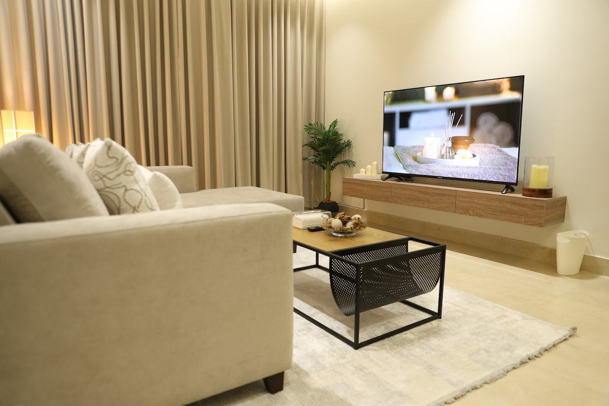Zwei Schlafzimmer und ein modernes Wohnzimmer Al Faisaliah 75-Zoll-Bildschirm